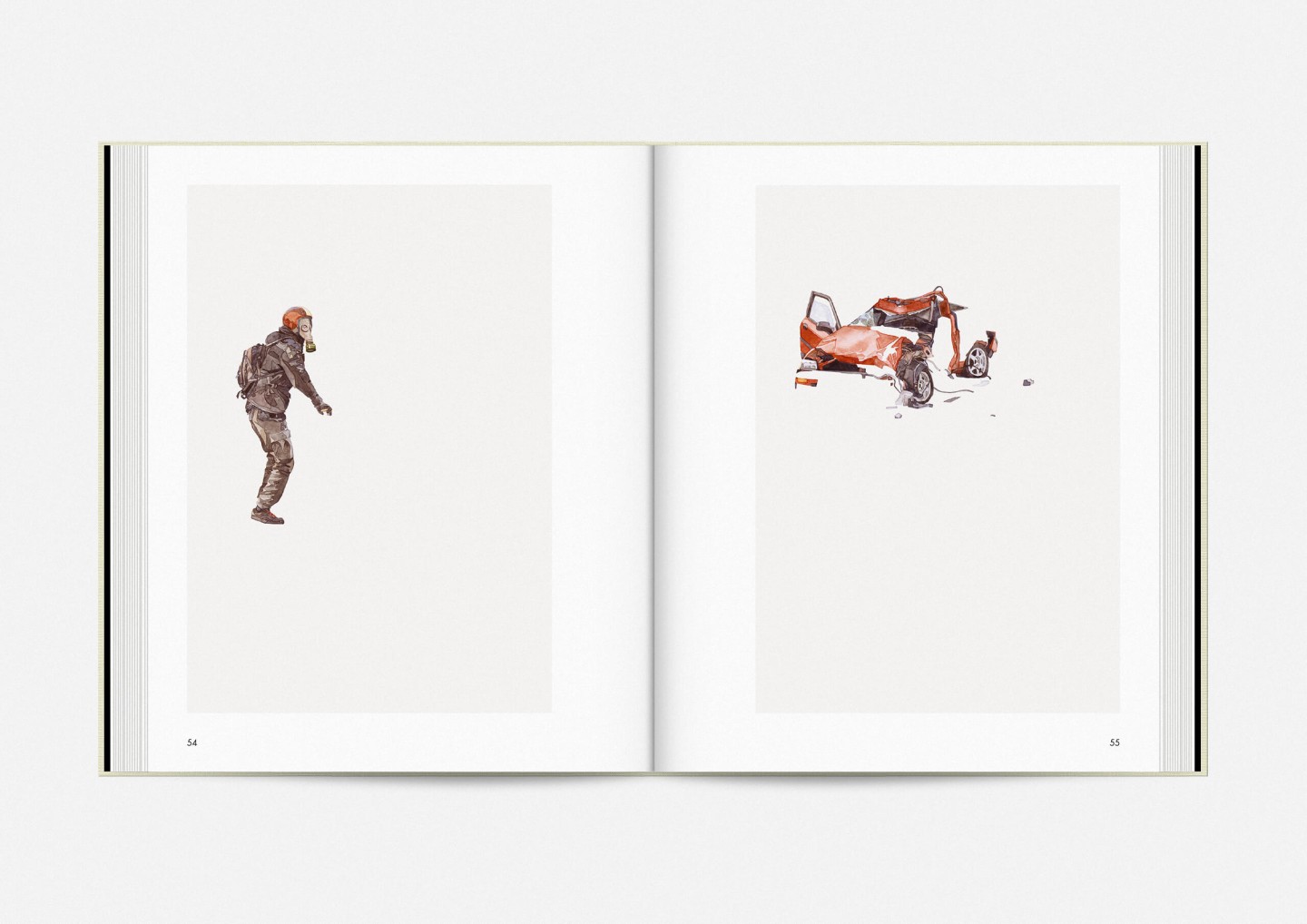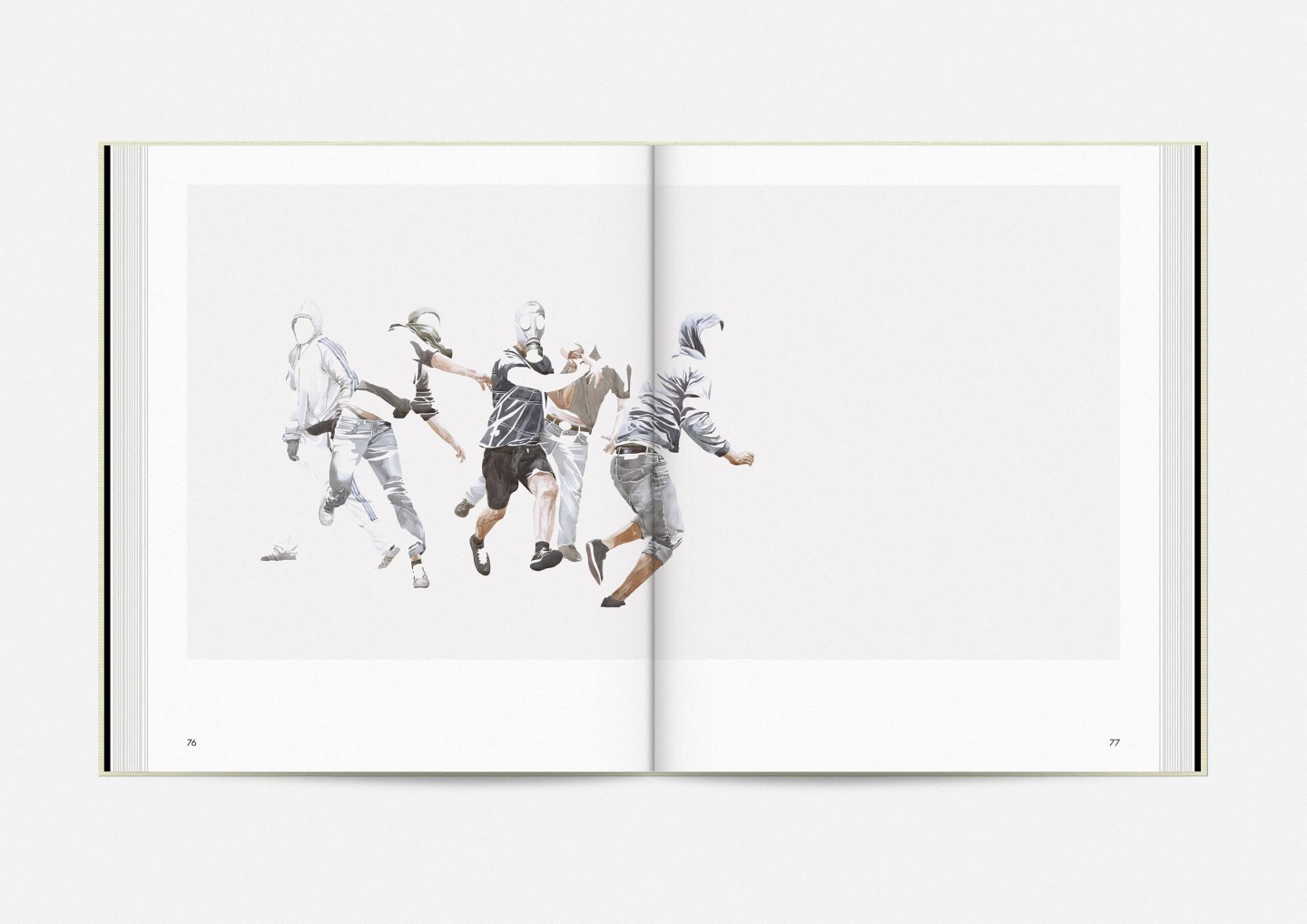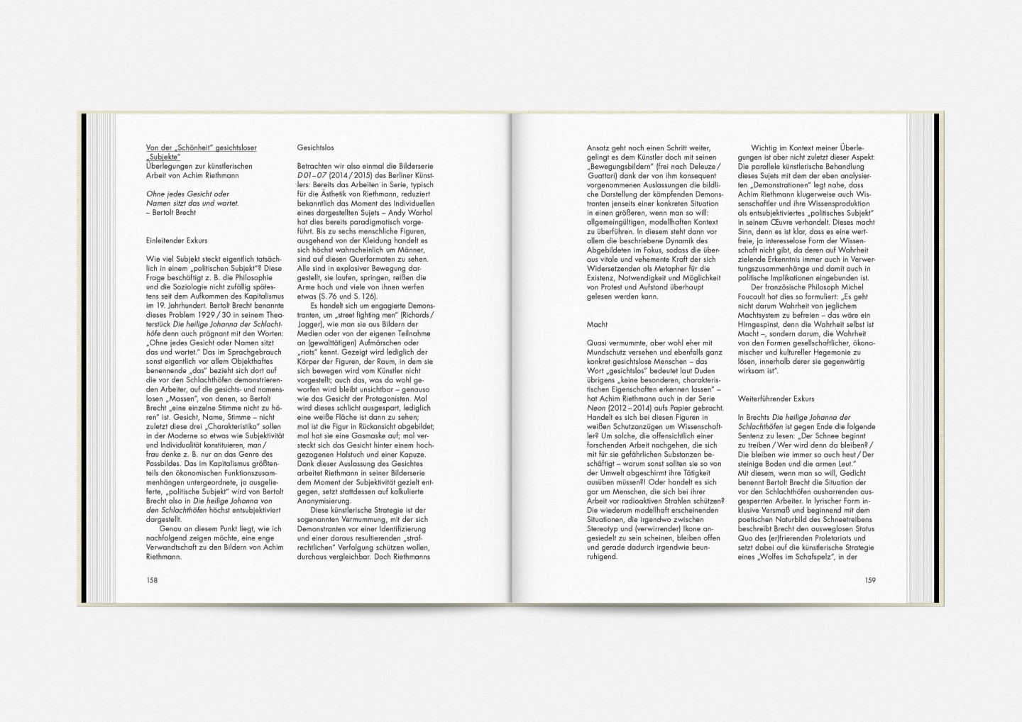 The book »ASR 09/16«, published by DISTANZ Verlag, is a compilation of watercolors and installations by Berlin artist Achim Riethmann from the past years. Consistent with the principle of omission and reduction characteristic of his oeuvre, Riethmann's works appear both framed by and levitating above the book's clean white pages. The book itself as an object disappears behind the artwork it presents. It also concentrates all additional information – work titles and accompanying essays, all set in classic, unobtrusive Futura – on its last pages.