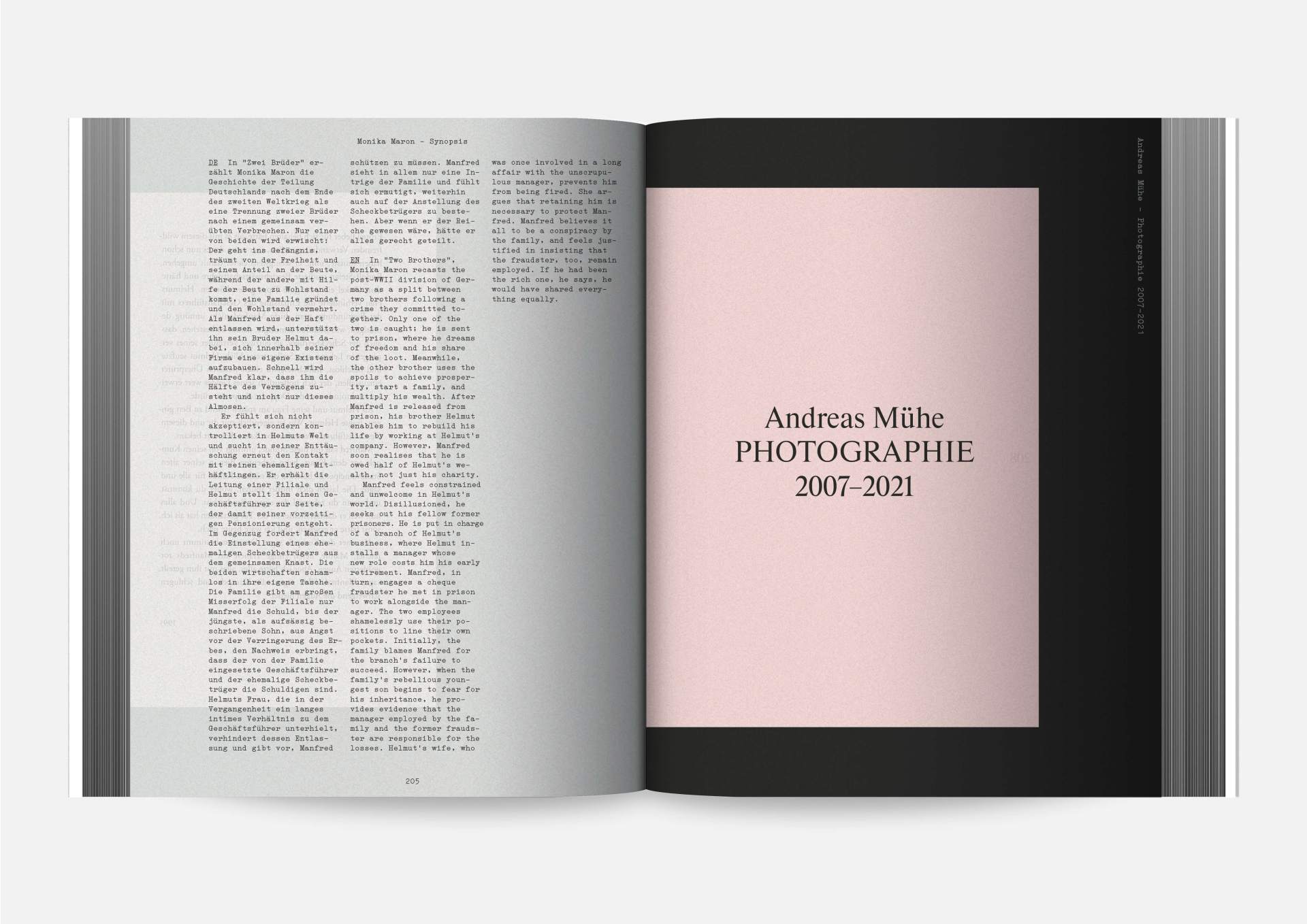How can two very different artists, also brothers, harmonize their work and create something in common? Their intense involvement with their family unites and divides them at the same time — and finally results in a catalog of seven individual books standing together like their family history, in which different time levels and several narrative strands interweave and challenge each other: The works of Andreas and Konrad Mühe interact with texts by Valeria Waibel, Karsten Ehlers, Monika Maron, Kito Nedo and a wonderful slanted comic by Gregor Hinz. The catalog accompanies the exhibition of the same name at KUNSTWERK Sammlung Klein in Eberdingen-Nussdorf, presented from 23.01.—01.05.2022.