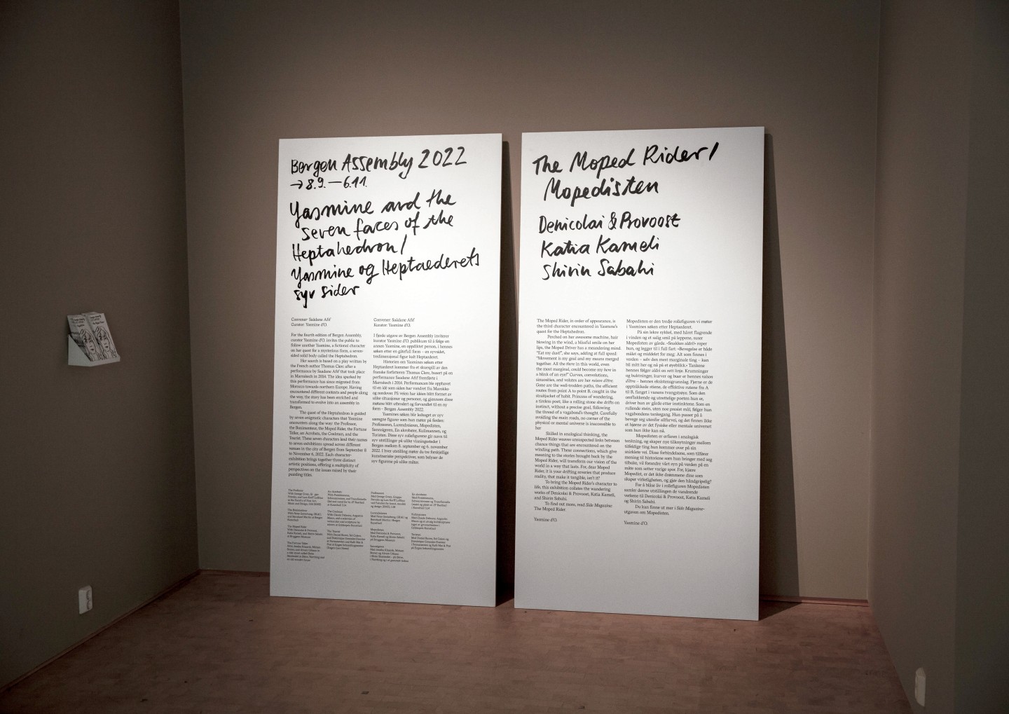 “Yasmine and the Seven Faces of the Heptahedron” At the heart of the 2022 Bergen Assembly, Norway's triennial art event, lies an intriguing narrative: Yasmine‘s quest for the Heptahedron.