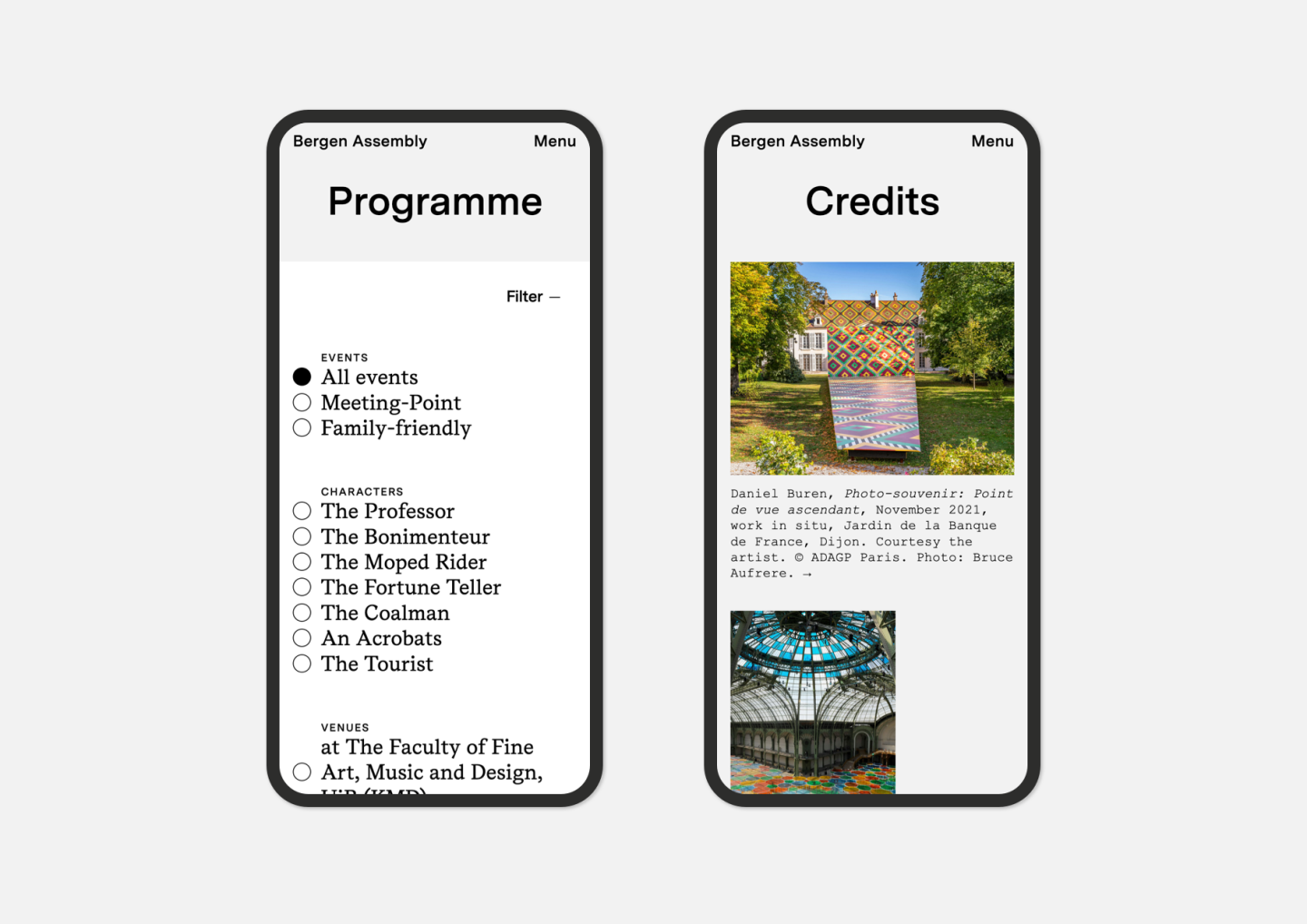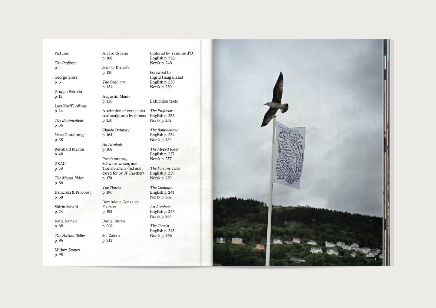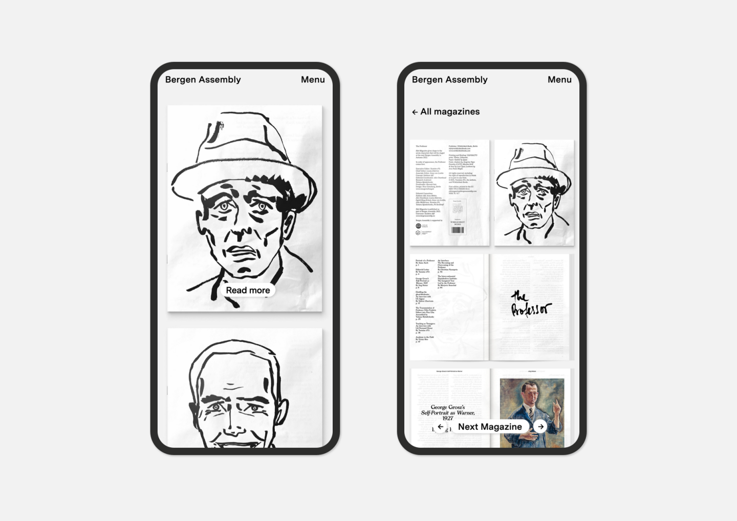 From September 8 to November 6, 2022, Bergen Assembly showcased these character-inspired exhibitions, each offering three artistic perspectives. "The Heptahedron" publication includes eight issues of Side Magazine: seven document each character's research, and an eighth serves as an exhibition catalog. This cohesive approach provided an immersive experience unified by the Heptahedron's concept.