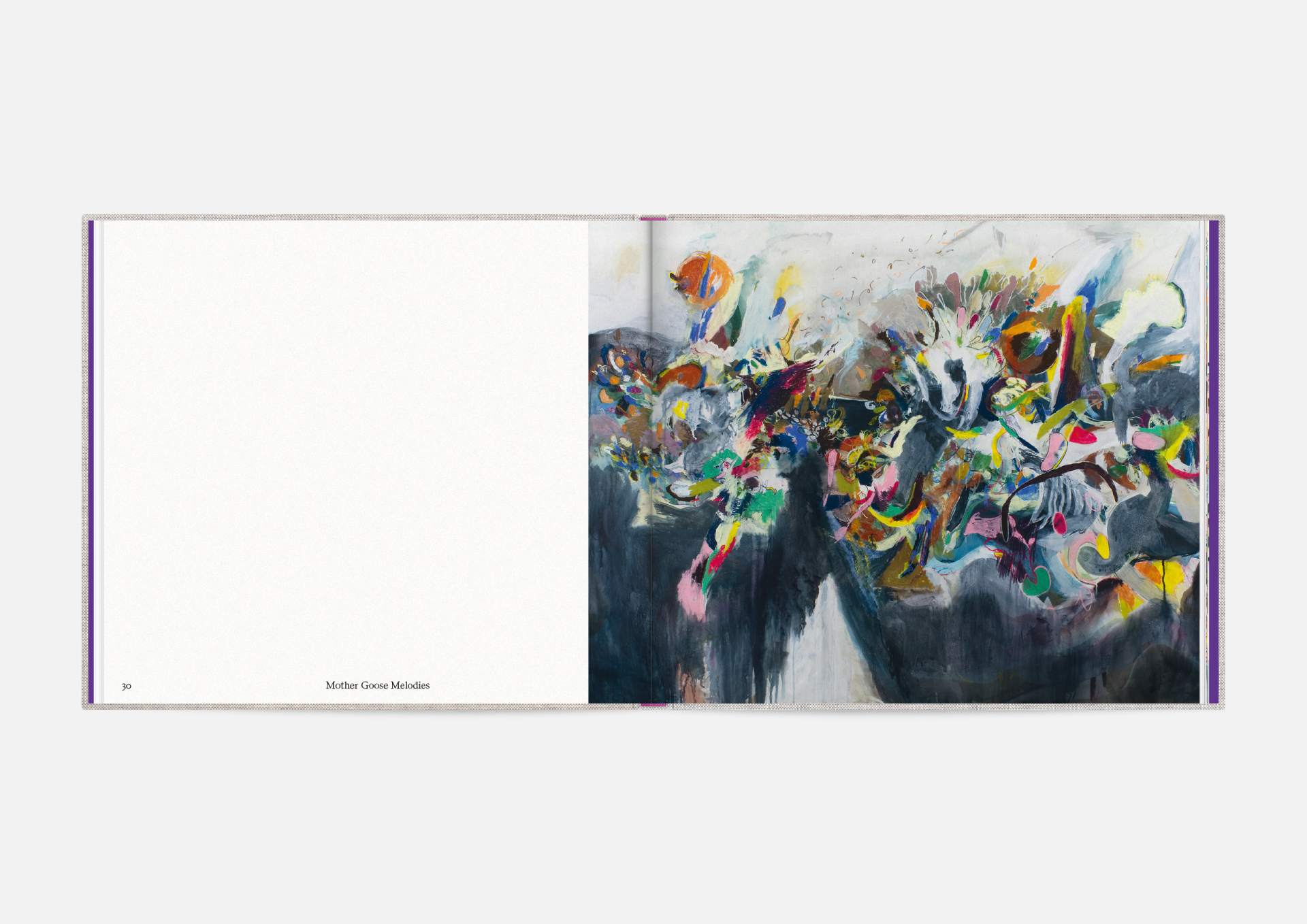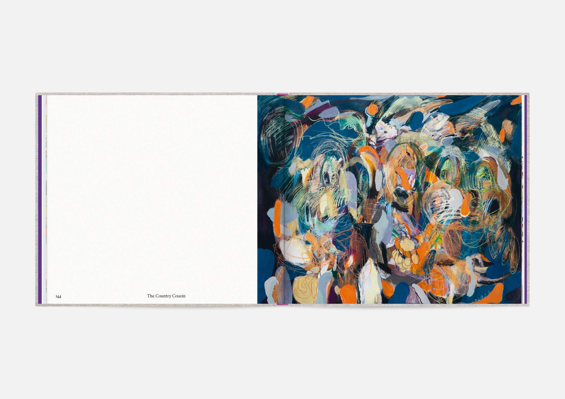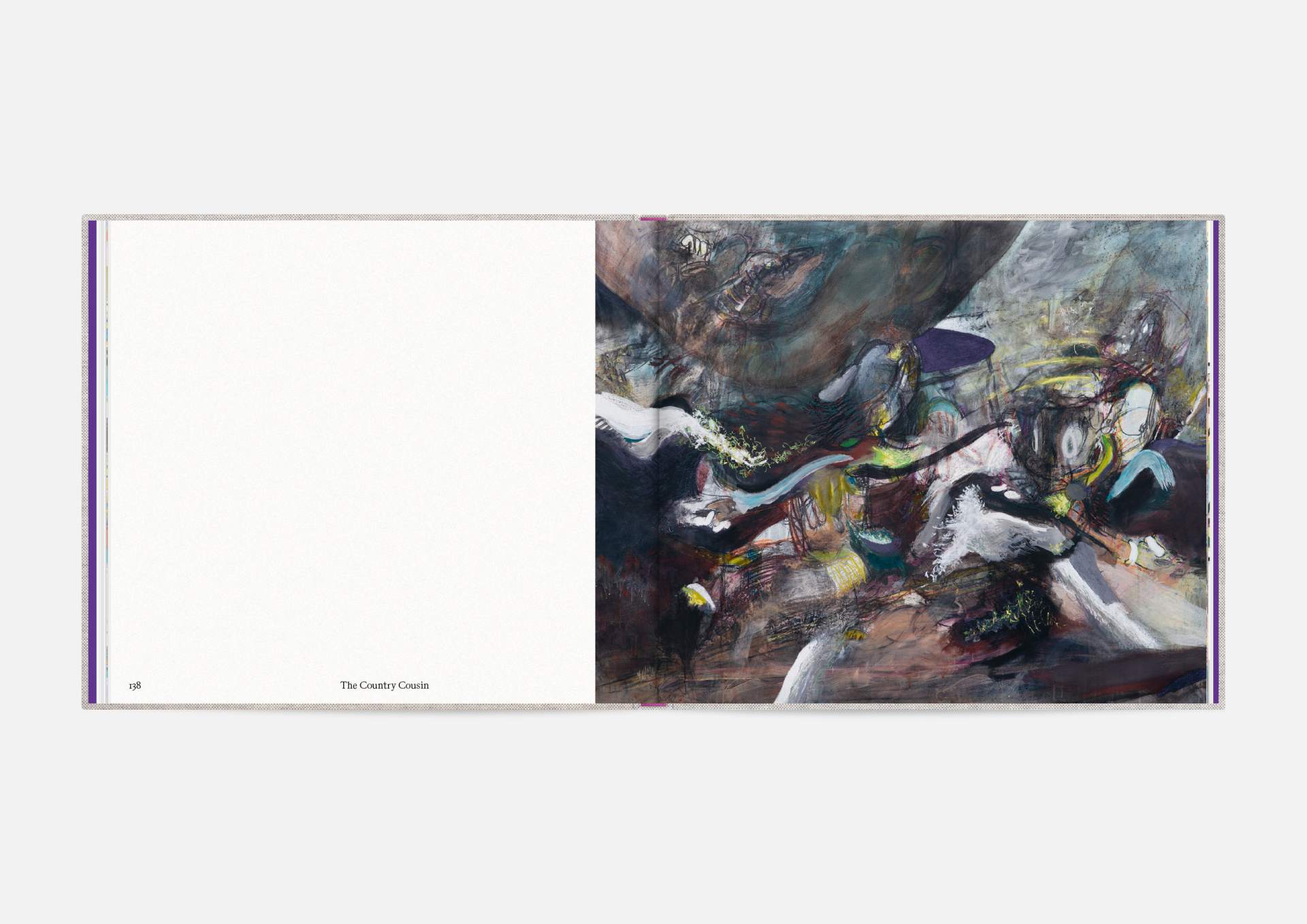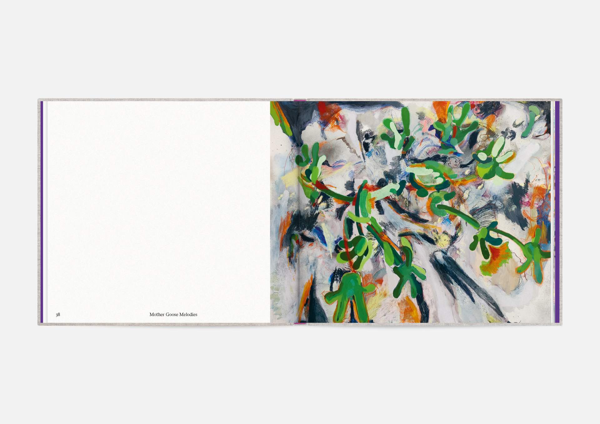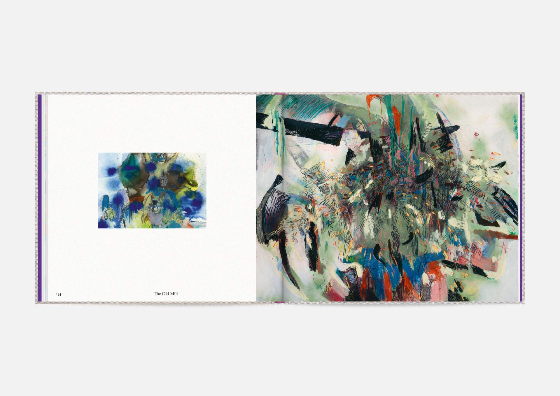 The book is the stage for the dynamic, explosive works. The proportions correspond to the film format of 4:5, and a linen cover references the coarse, unprimed canvas used; the print on matte uncoated paper hints at the chalky structures of David Moses’ works.