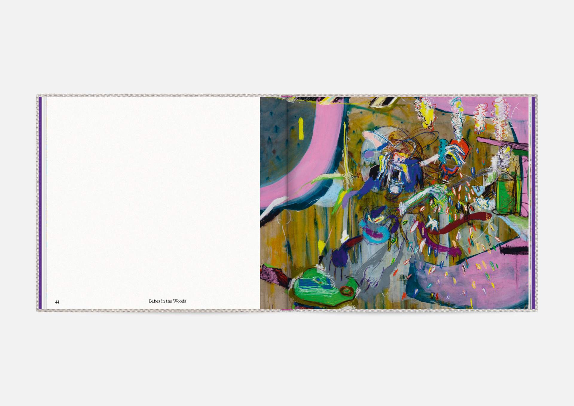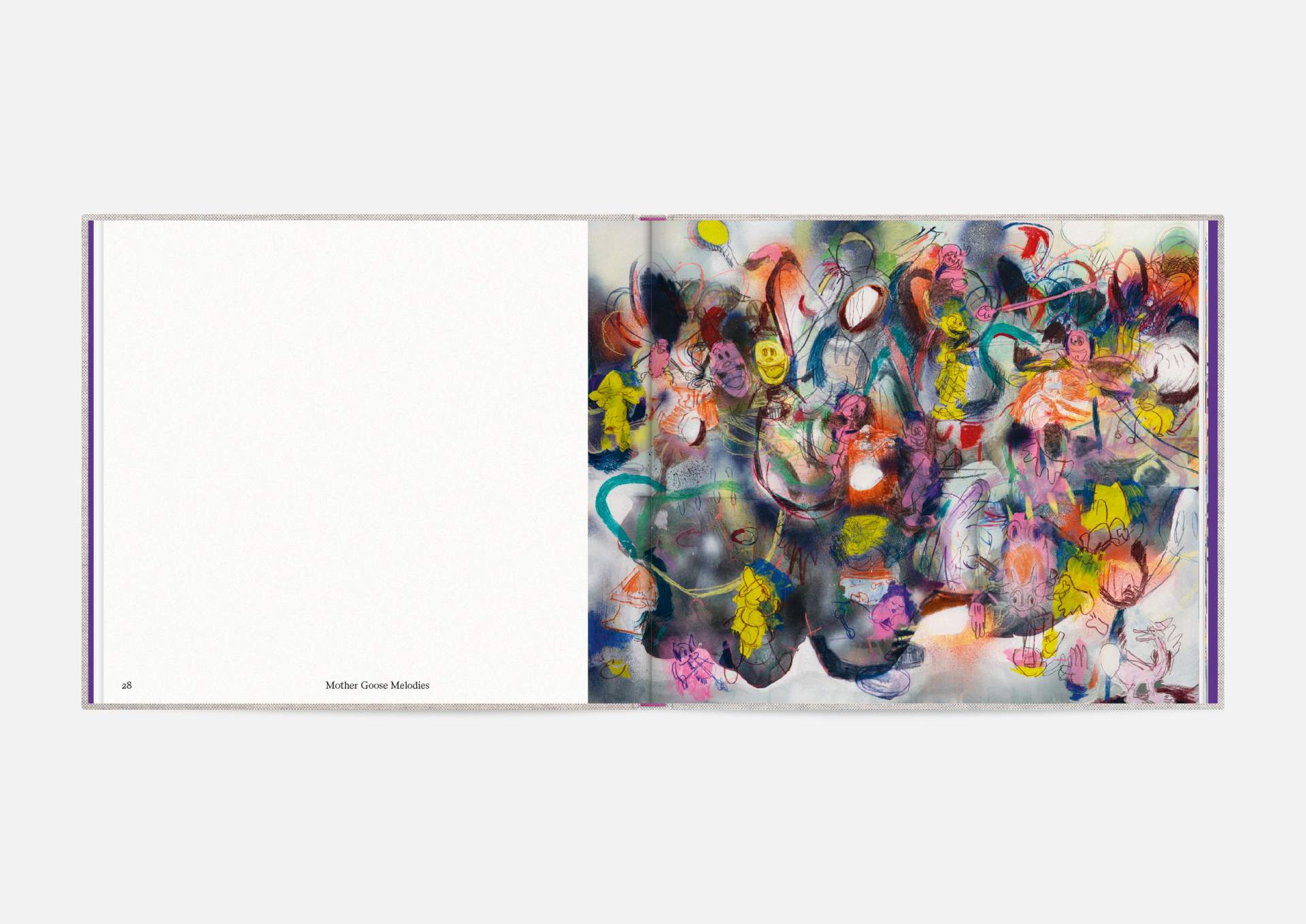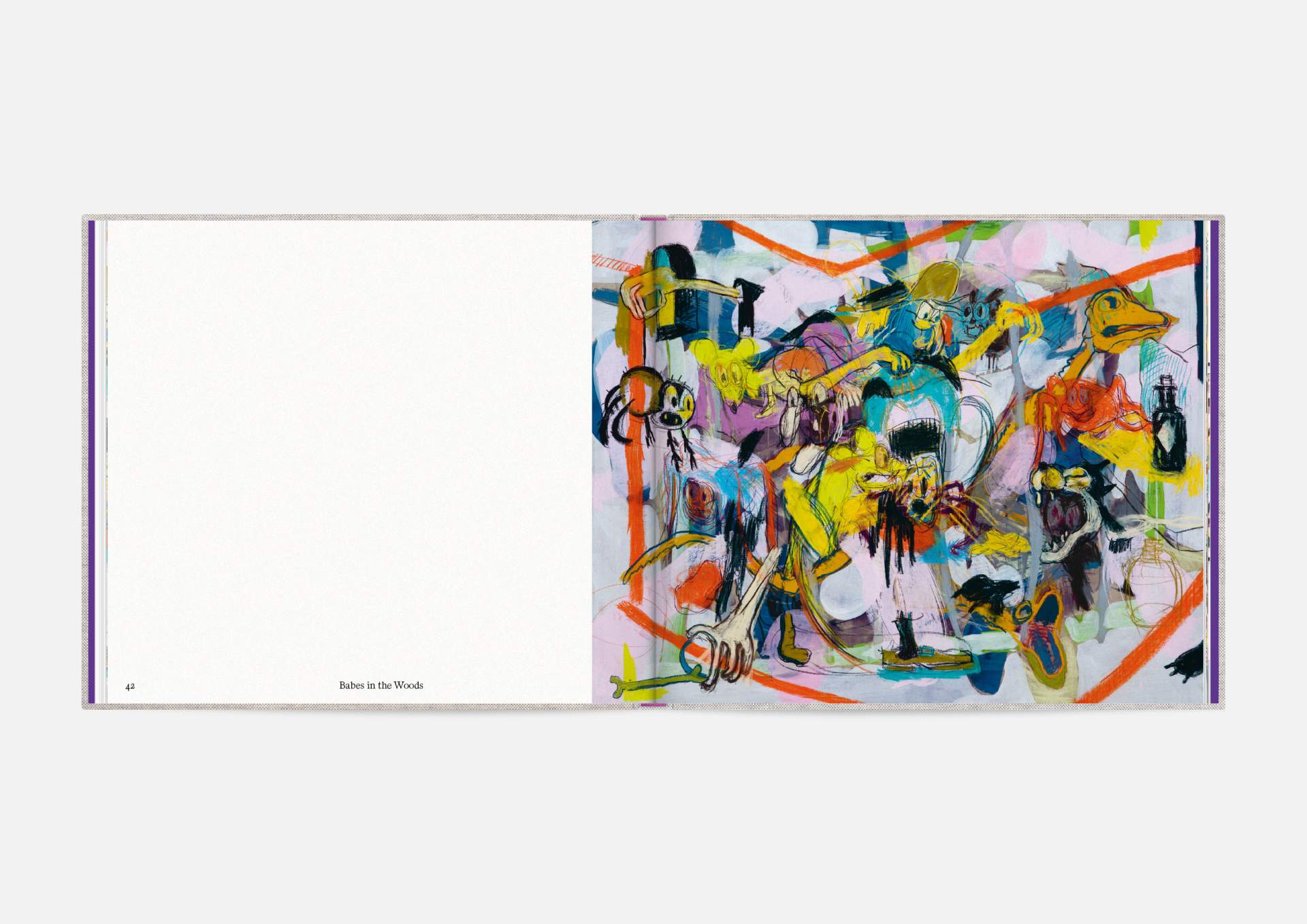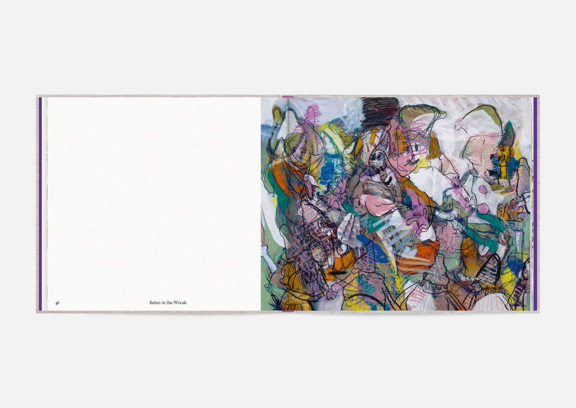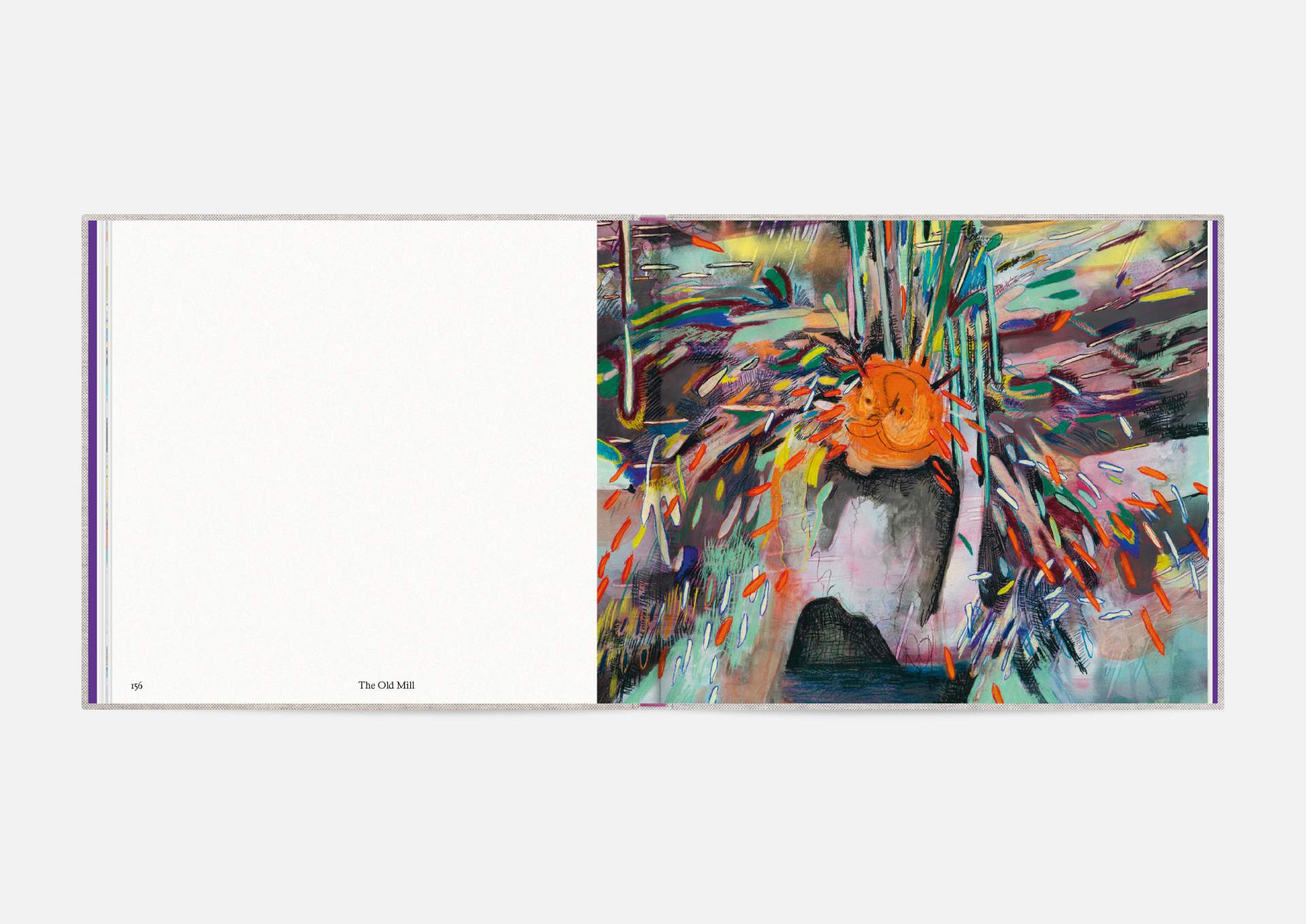 The book is the stage for the dynamic, explosive works. The proportions correspond to the film format of 4:5, and a linen cover references the coarse, unprimed canvas used; the print on matte uncoated paper hints at the chalky structures of David Moses’ works.