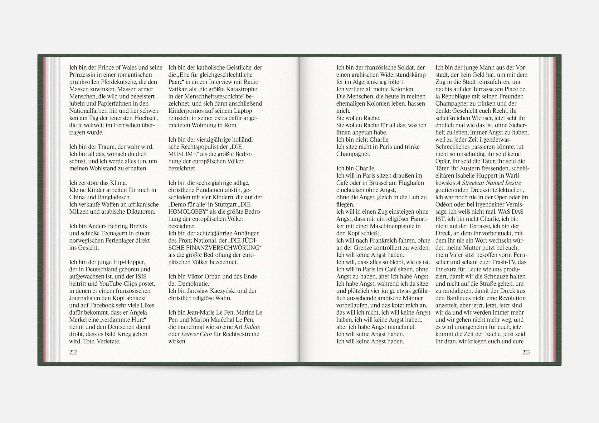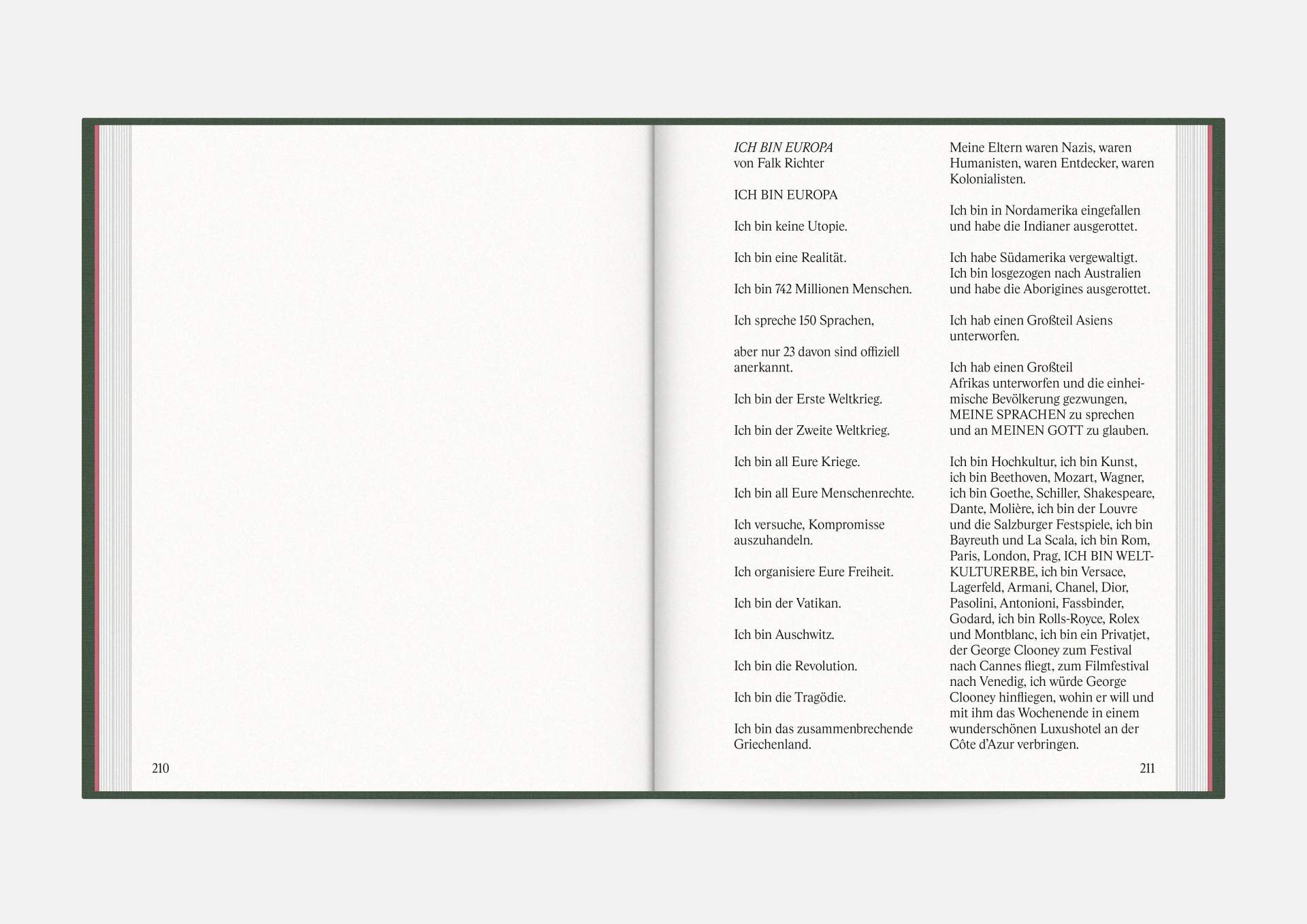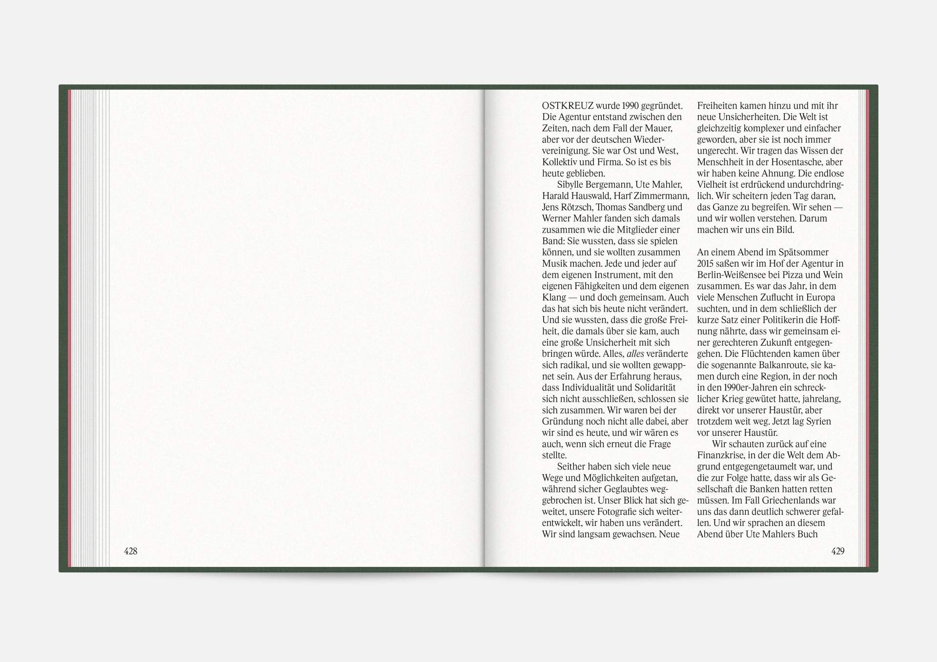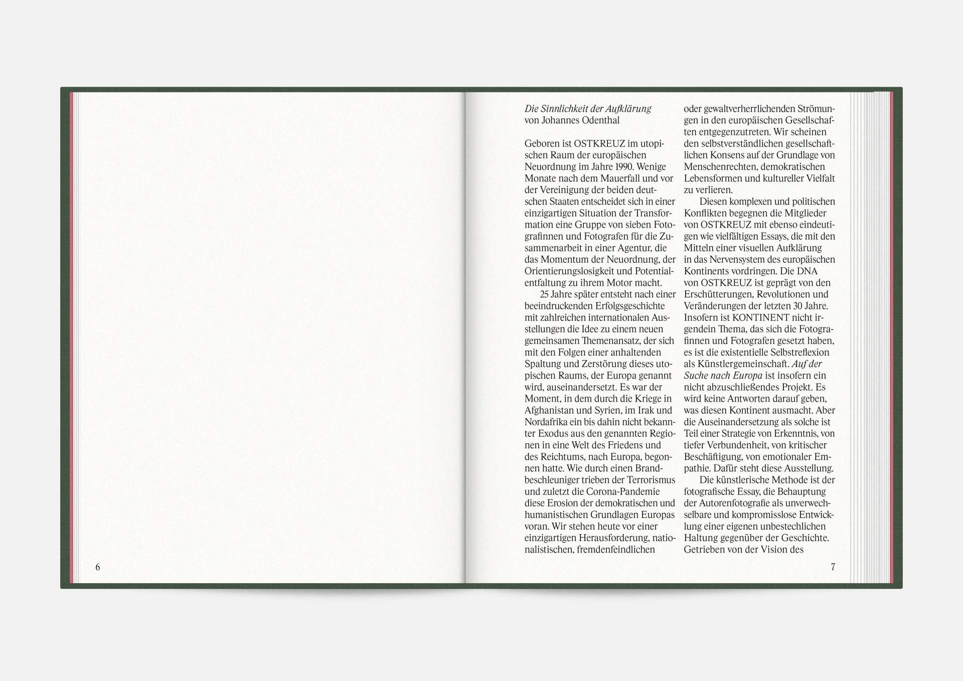 In their exhibition »Continent – In Search of Europe«, the Ostkreuz collective reflects Europe’s contradictive and challenging present. In 22 political photo essays, the photographers capture the ongoing division’s wounds and lovingly explore the question of future coexistence. Through typographical restraint and scenic treatment of the white space, the accompanying publication manages to become a visual bracket that spans the pictorial world’s diversity and fuses them like collaborative collages.