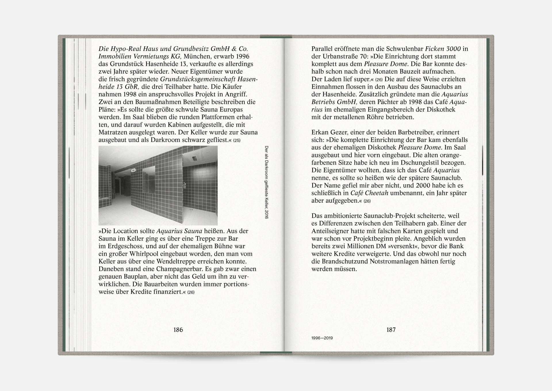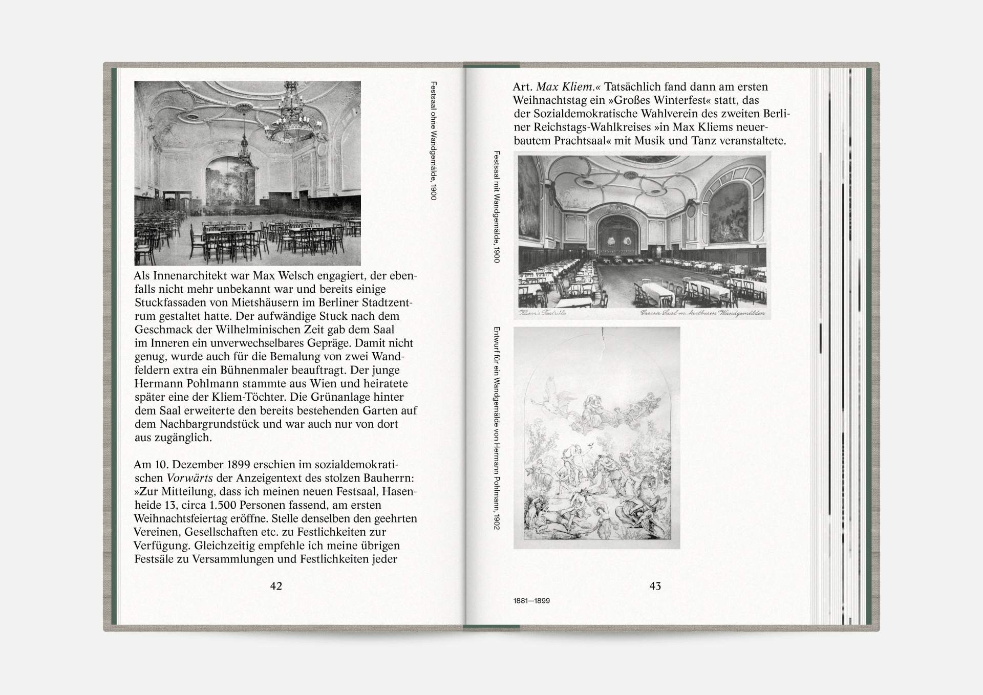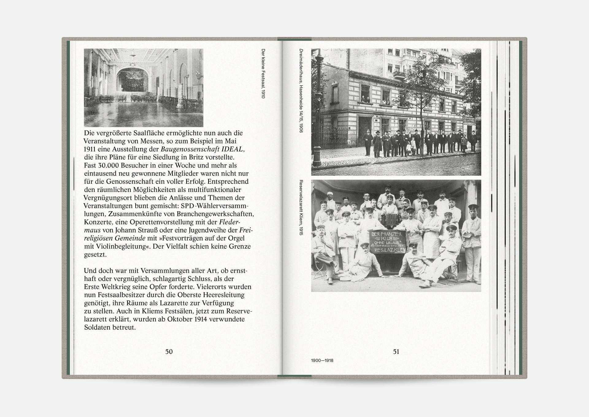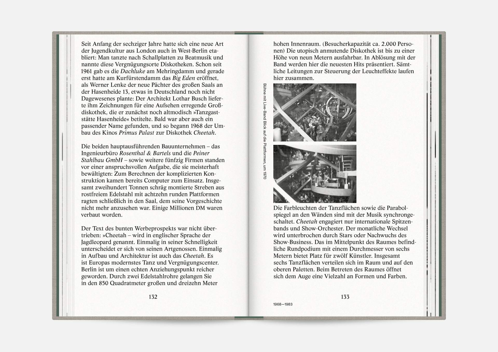 The book “Hasenheide 13” is a little treasure. Indulging in black and white imagery, it takes us on a journey into Berlin’s past. Stories and anecdotes entwine around a ballroom that will serve as an exhibition space for the Wemhöner Collection’s contemporary art after its renovation. Radically modern typesetting, together with a classic bibliophile setting, lovingly bound in embossed linen, create an exciting contrast.