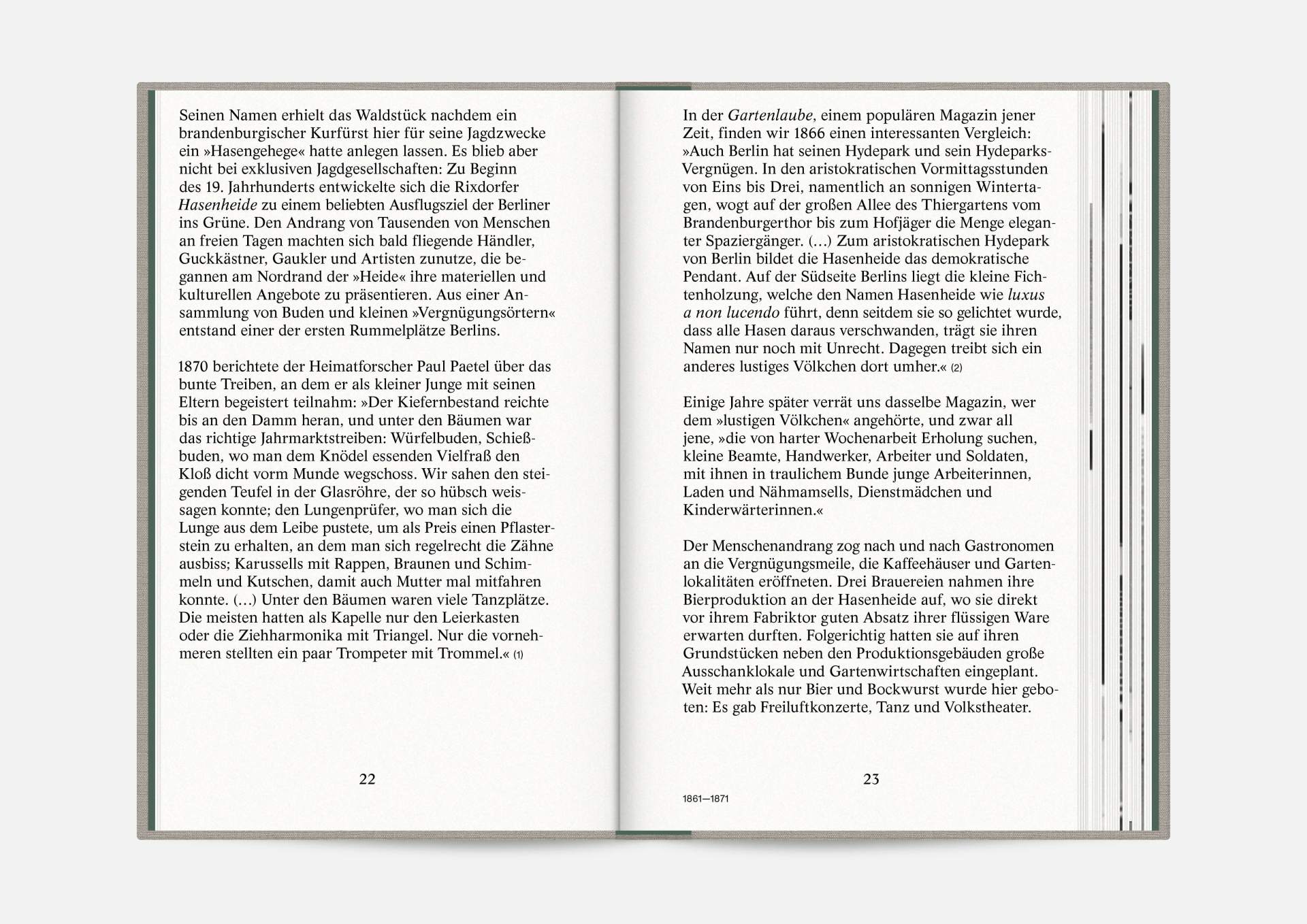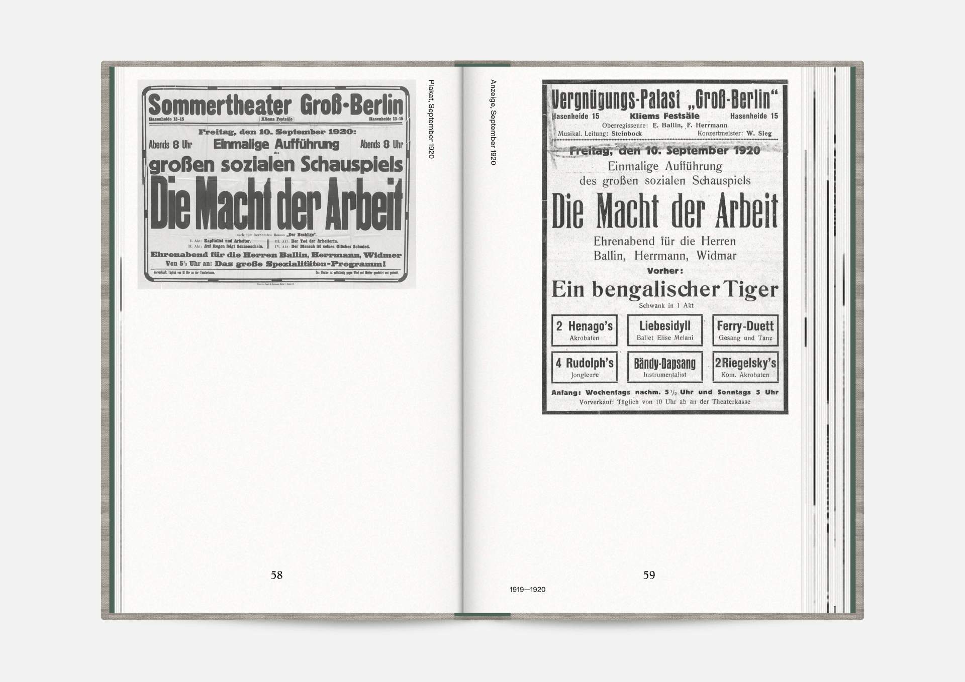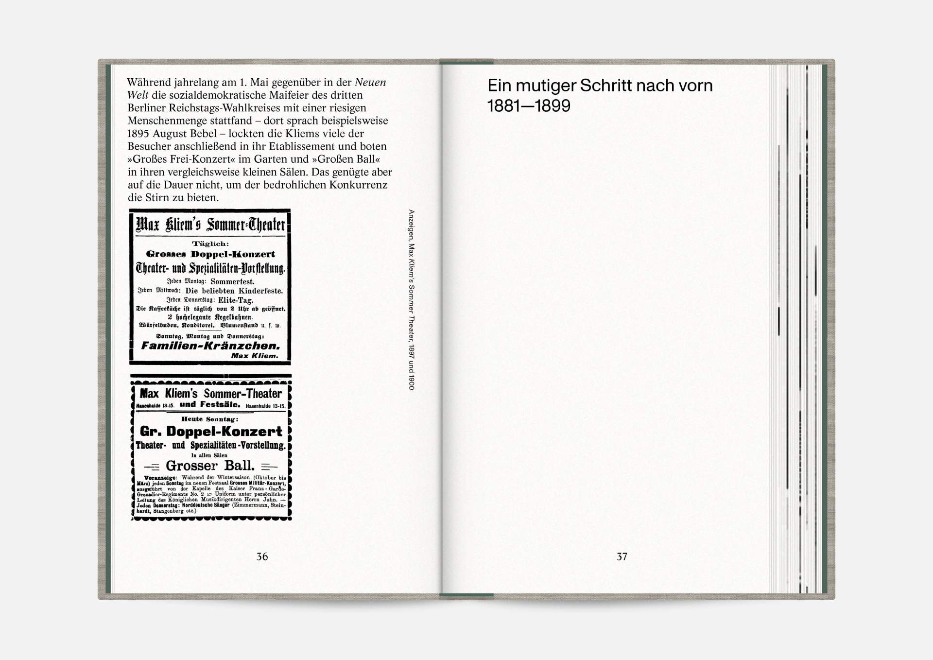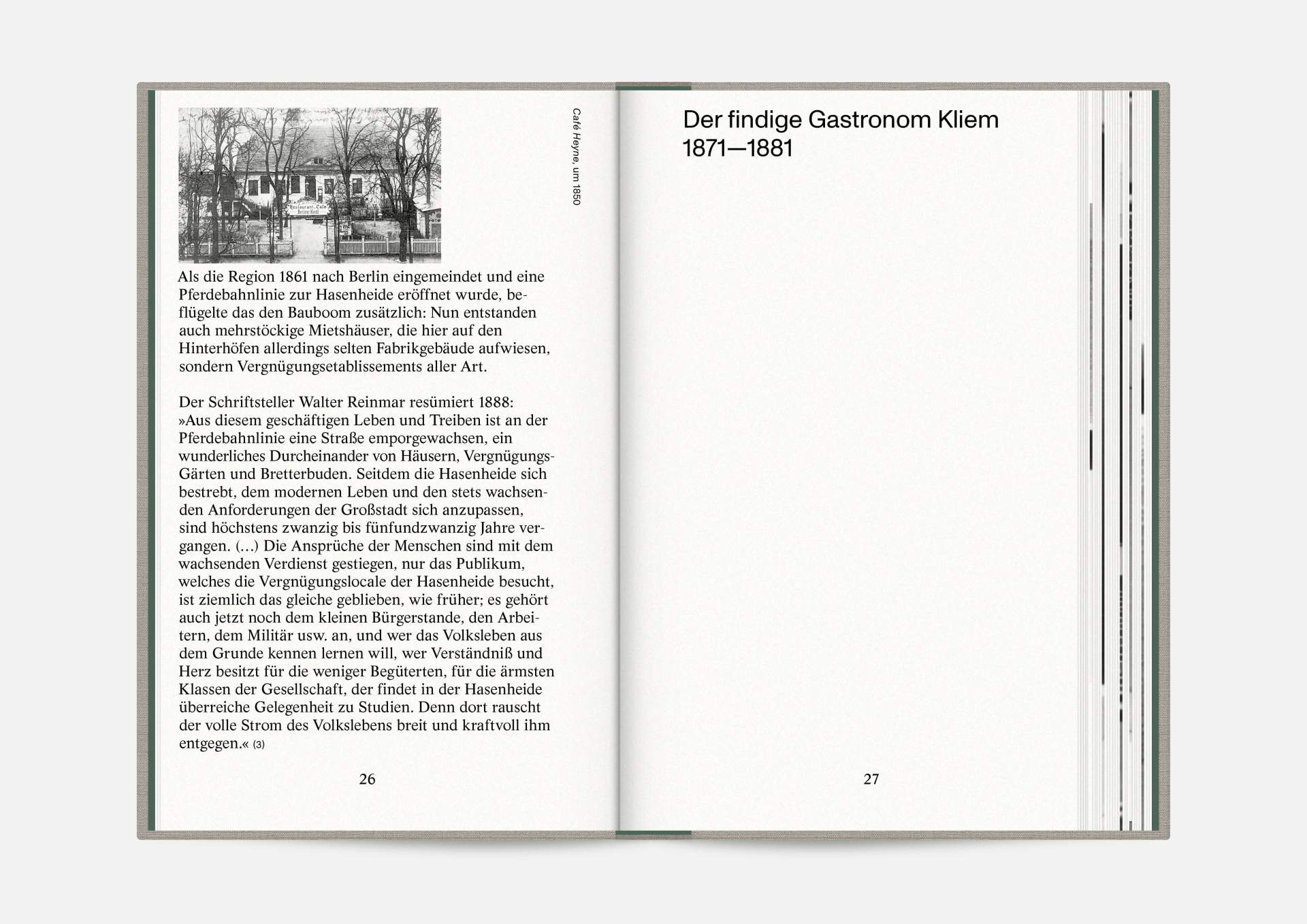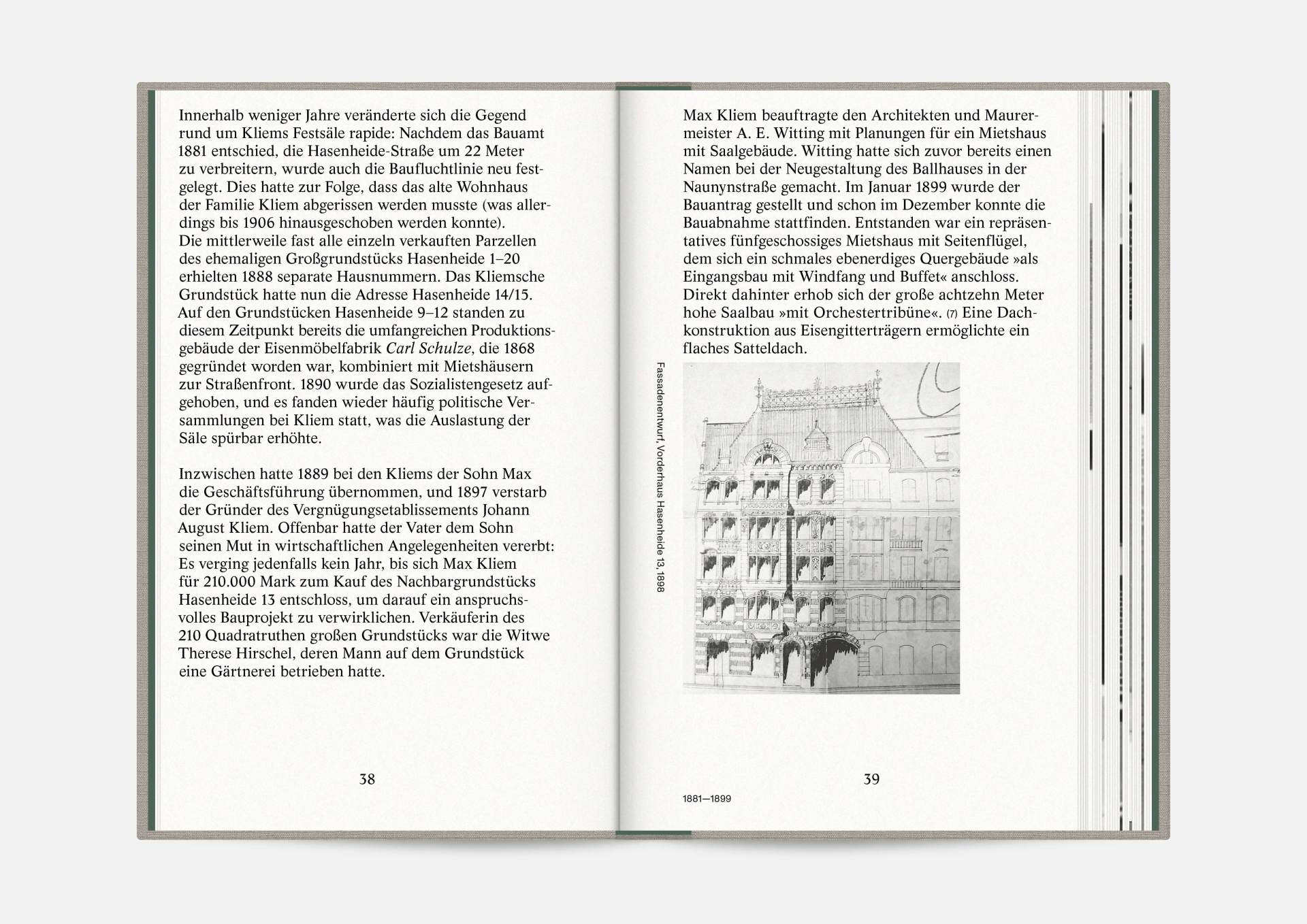 The book “Hasenheide 13” is a little treasure. Indulging in black and white imagery, it takes us on a journey into Berlin’s past. Stories and anecdotes entwine around a ballroom that will serve as an exhibition space for the Wemhöner Collection’s contemporary art after its renovation. Radically modern typesetting, together with a classic bibliophile setting, lovingly bound in embossed linen, create an exciting contrast.