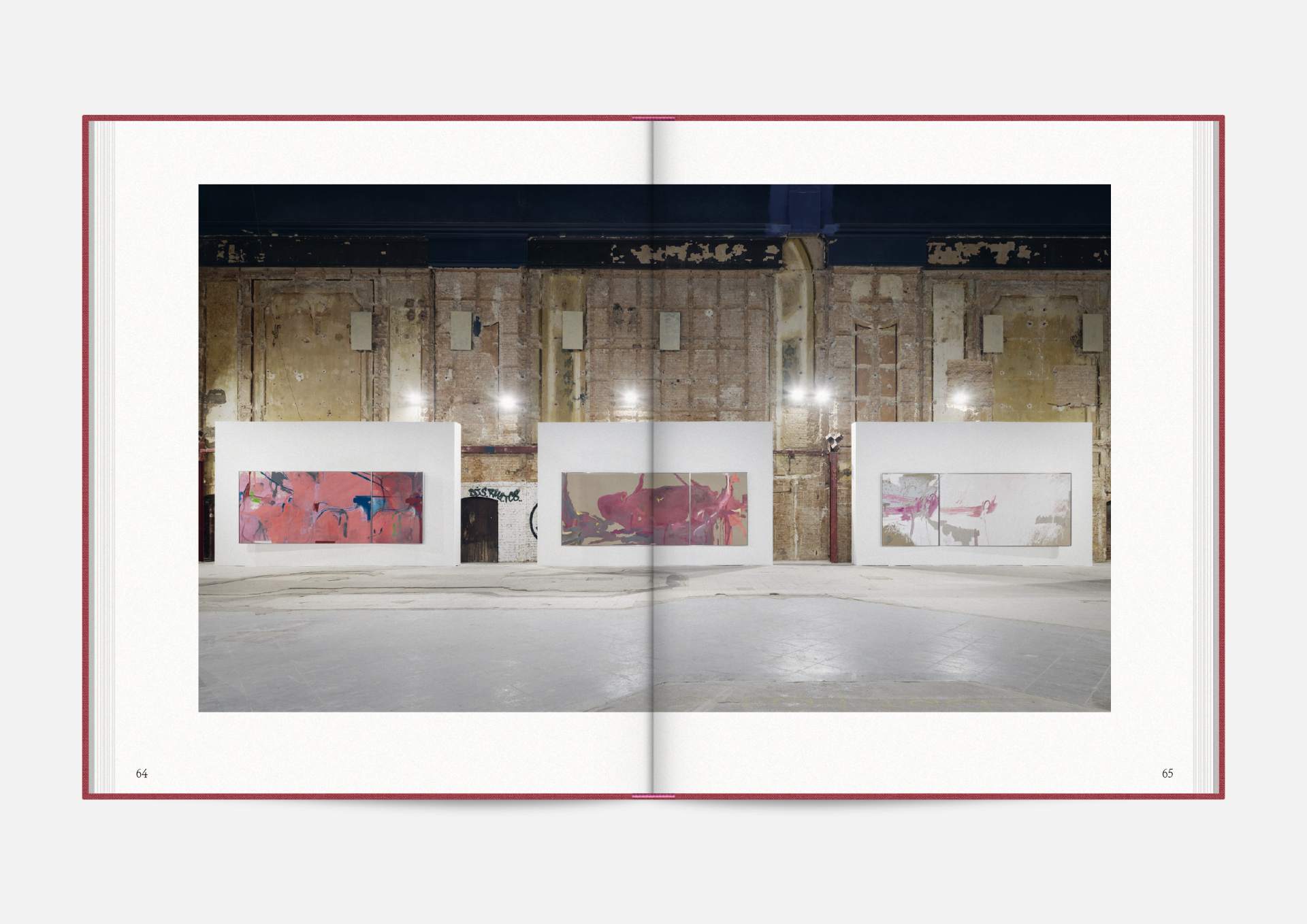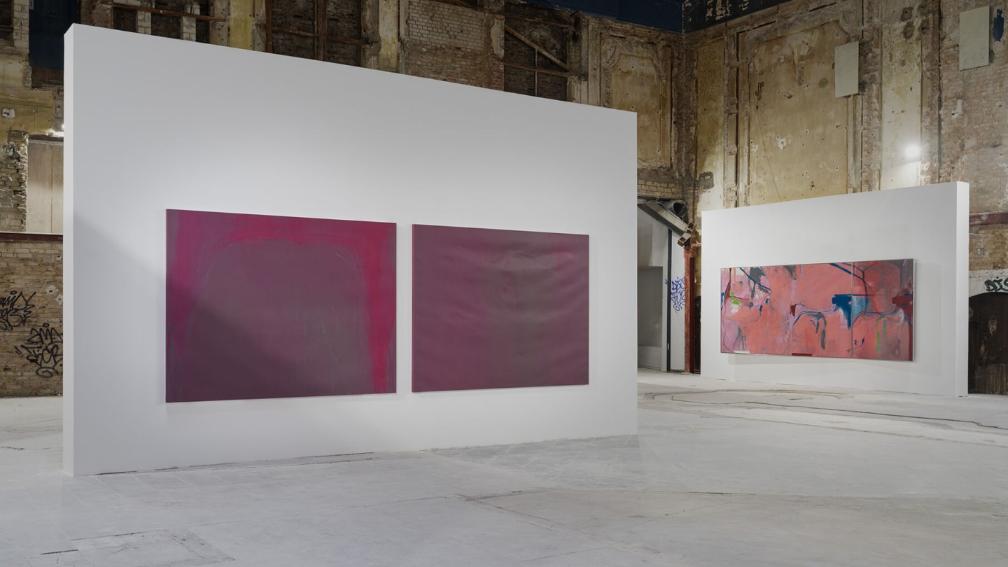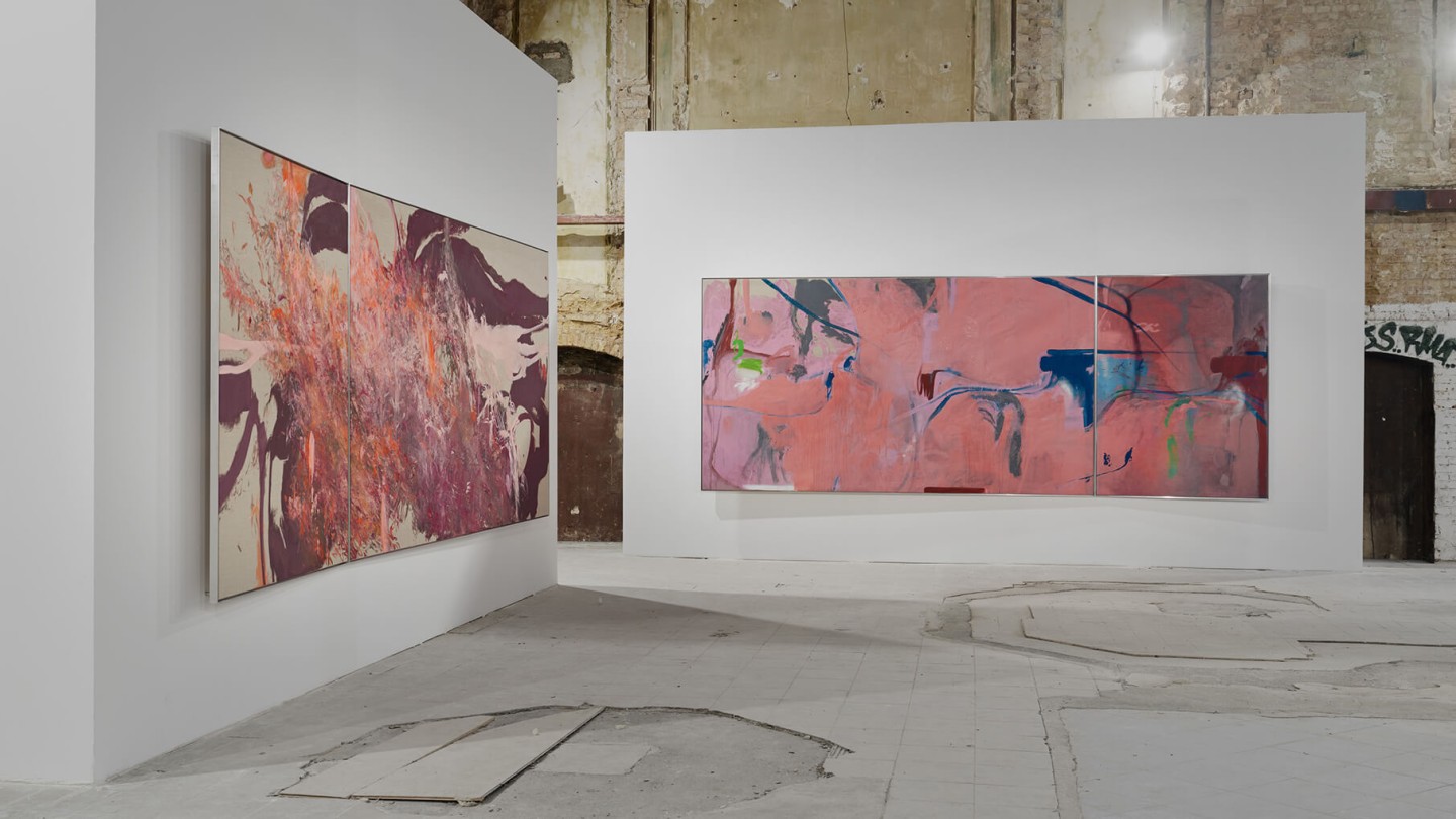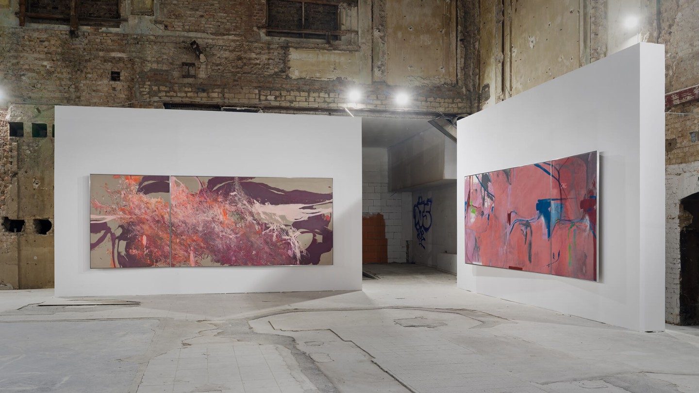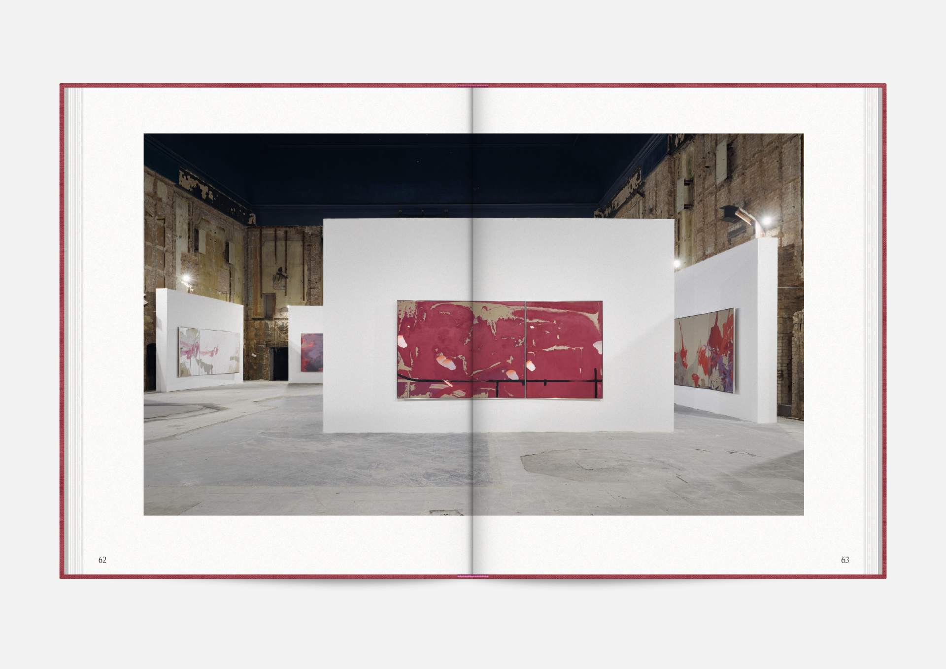 The exhibition catalog to give space to Michael Müller’s diptychs. According to the show, parts of longer and narrower canvas facing each other in folding pages in a wide horizontal aligned publication format. Thus, it gives an idea of the overwhelming large formats of abstract expressionist works that seem to have found their natural habitat in the impressive ballrooms of the Wemhöner Collection at Hasenheide 13.
