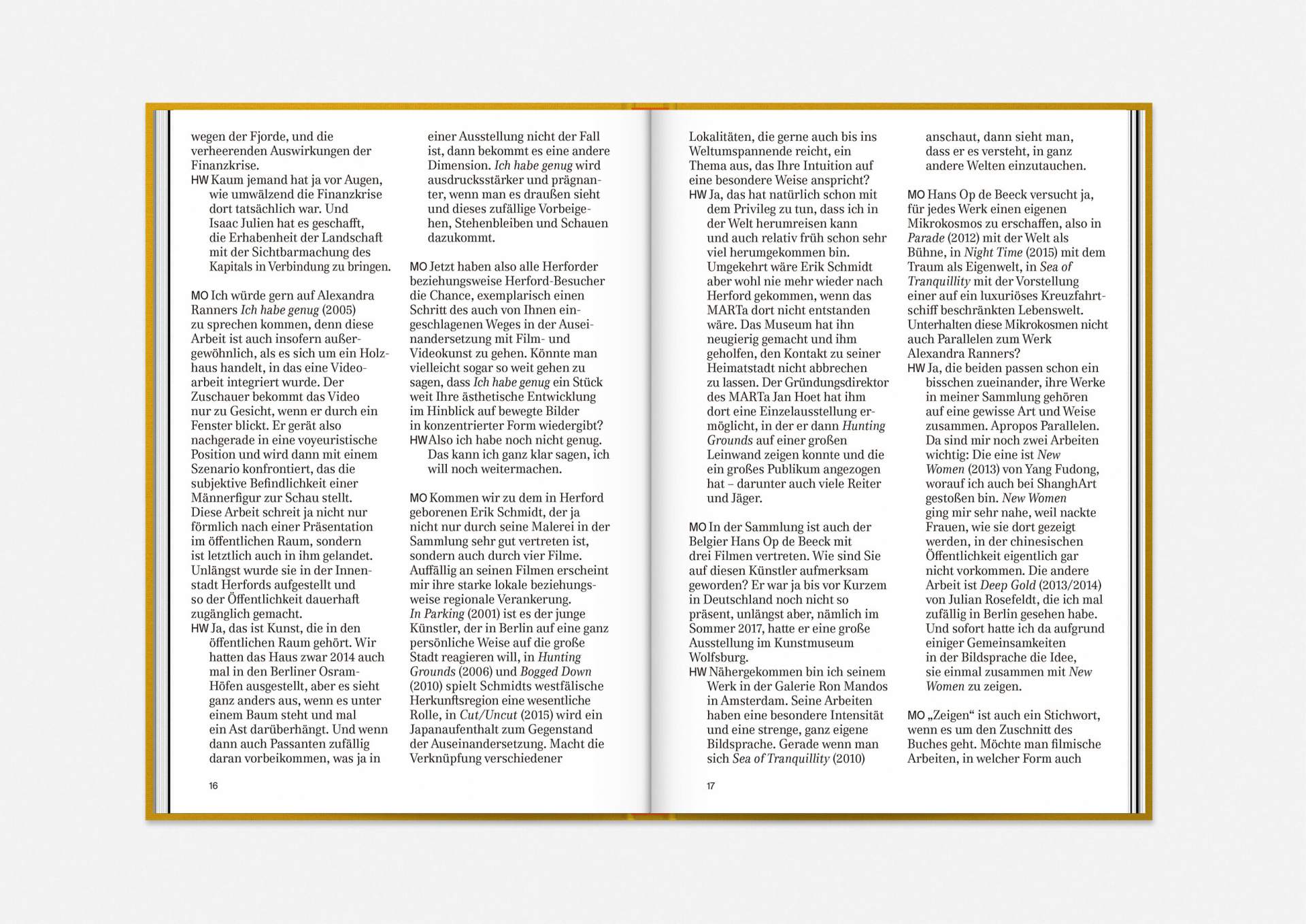 A catalogue that resembles a film screening: visually stunning, shimmering and in motion – and just like the films and video art works from the Wemhömer Collection that it documents.