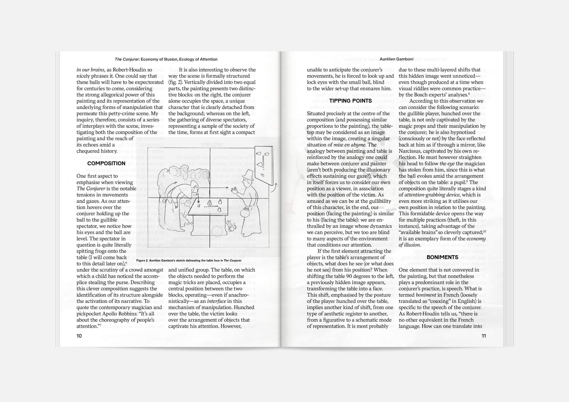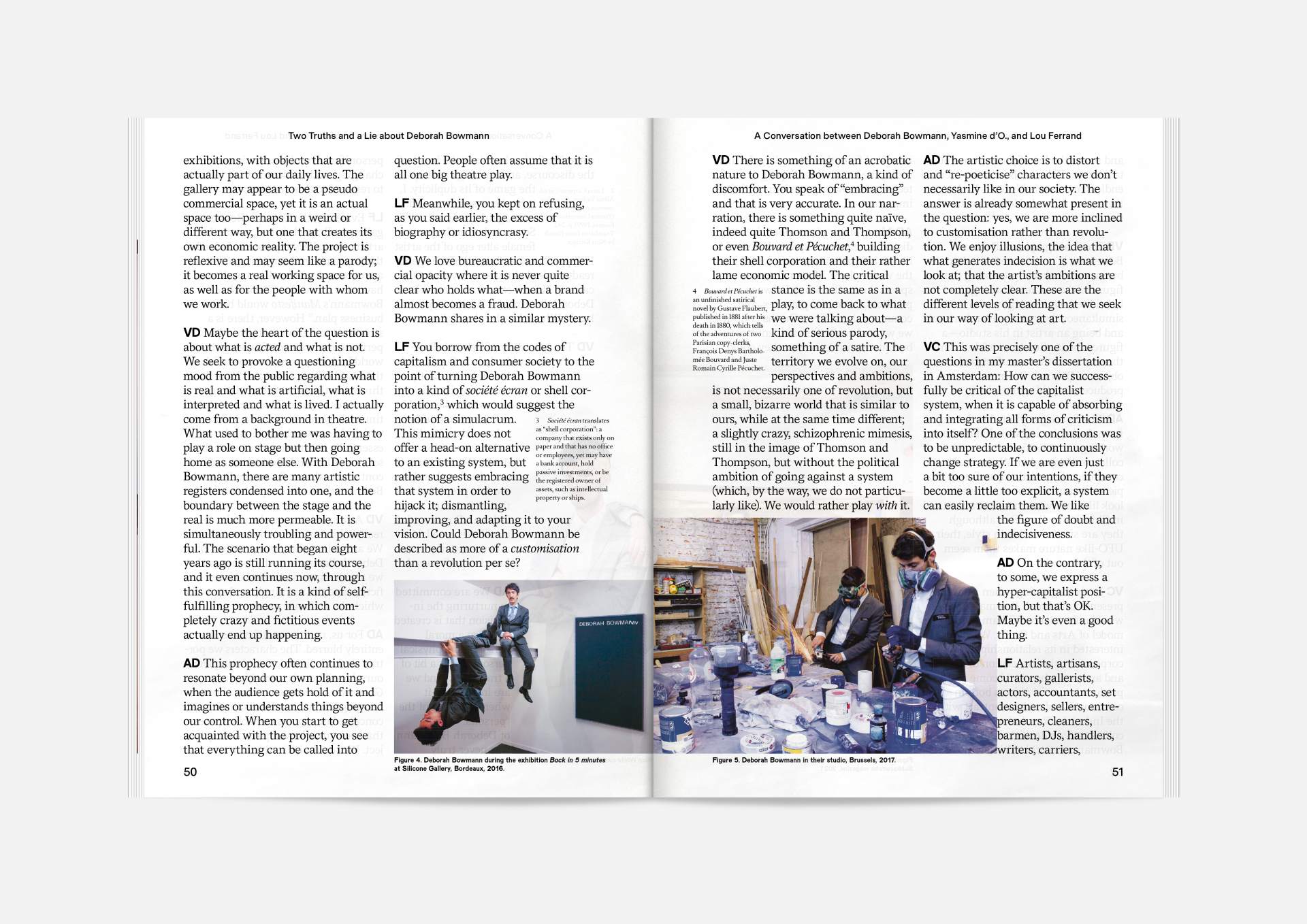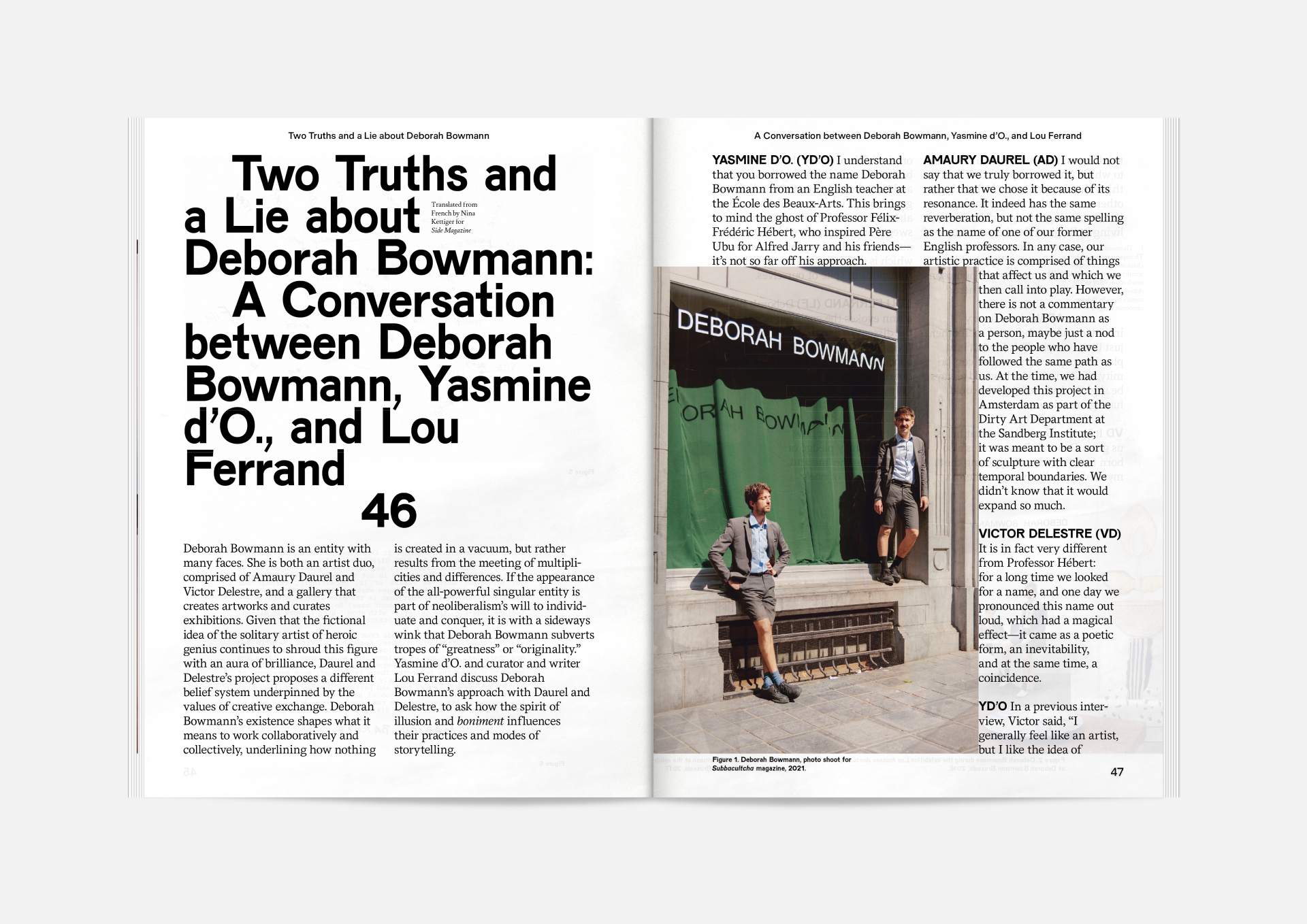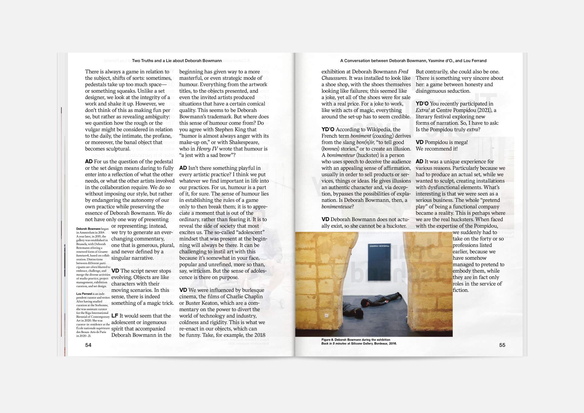 Side Magazine gathers the seven characters in The Heptahedron, a play written by the French poet, essayist, and scholar Thomas Clerc in 2016. These characters are the Professor, the Moped Rider, the Bonimenteur, the Fortune Teller, an Acrobat, the Coalman, and the Tourist.