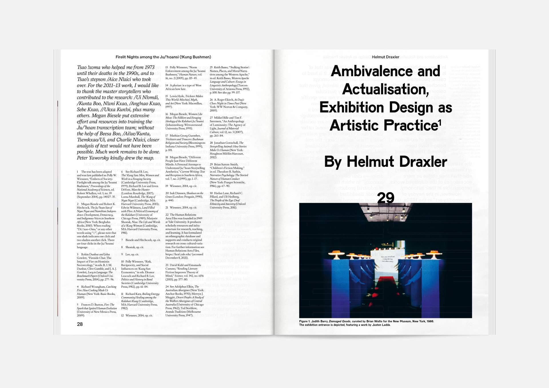 The second issue with contributions by: Aurélien Gamboni, Polly Wiessner, Helmut Draxler, Marion Baruch, Deborah Bowmann, Lou Ferrand, Jean Breschand, and Jacqueline Barus-Michel.