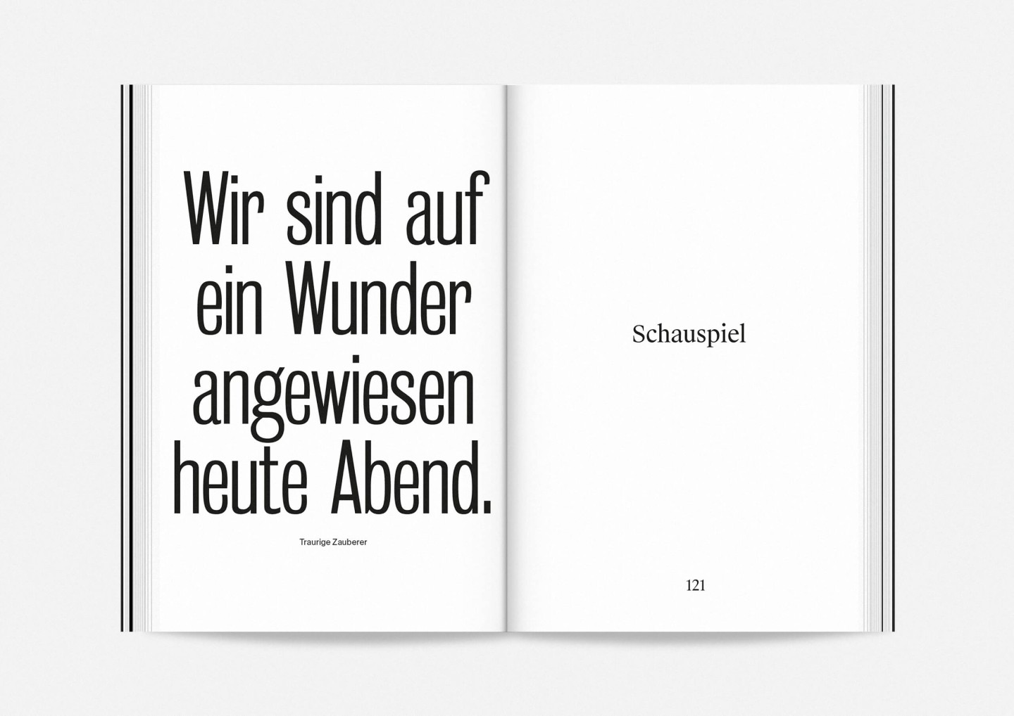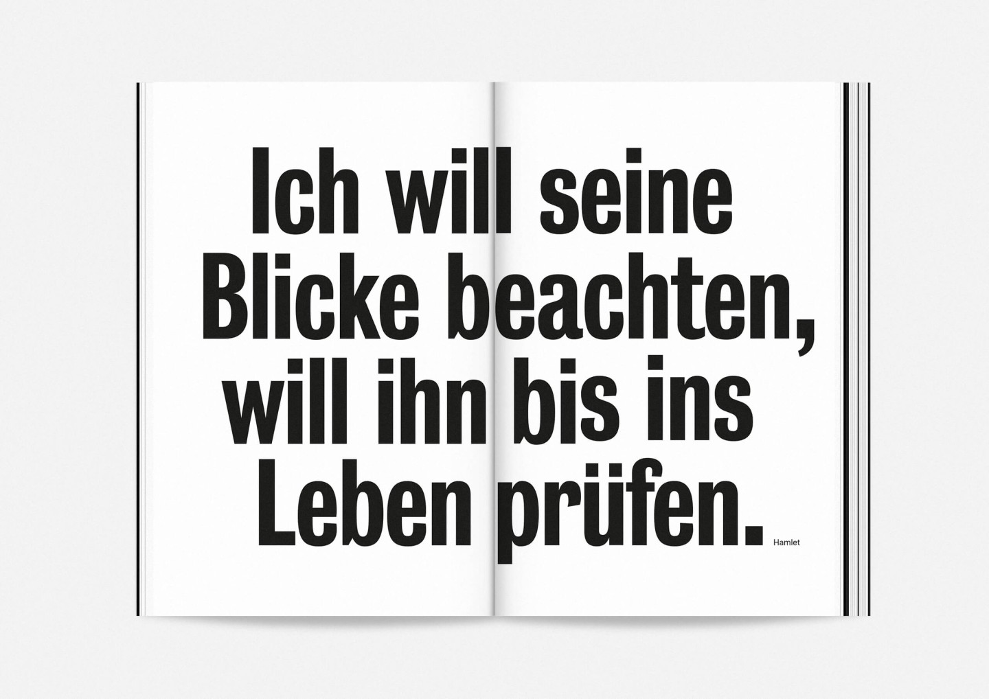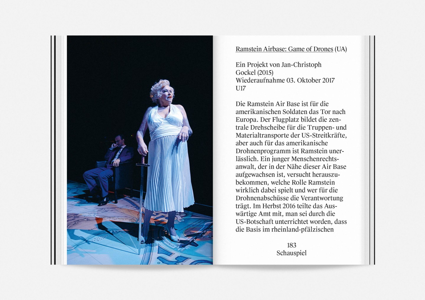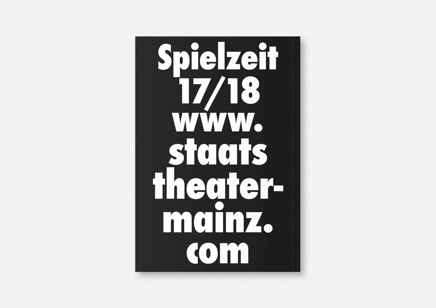 The season program 2017/18 of Staatstheater Mainz (Mainz State Theatre) opens with an impressive collection of photographs of its members, purposefully presented in no hierarchical order to showcase the wide array of talent both on stage and off required to make it work. The program’s strikingly compact format allows for every single face to fill an entire page and momentarily, equanimously, »take center stage«.