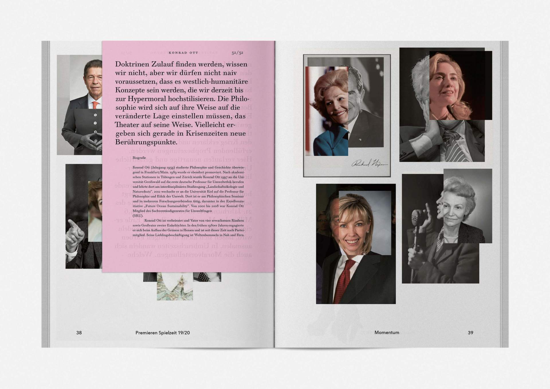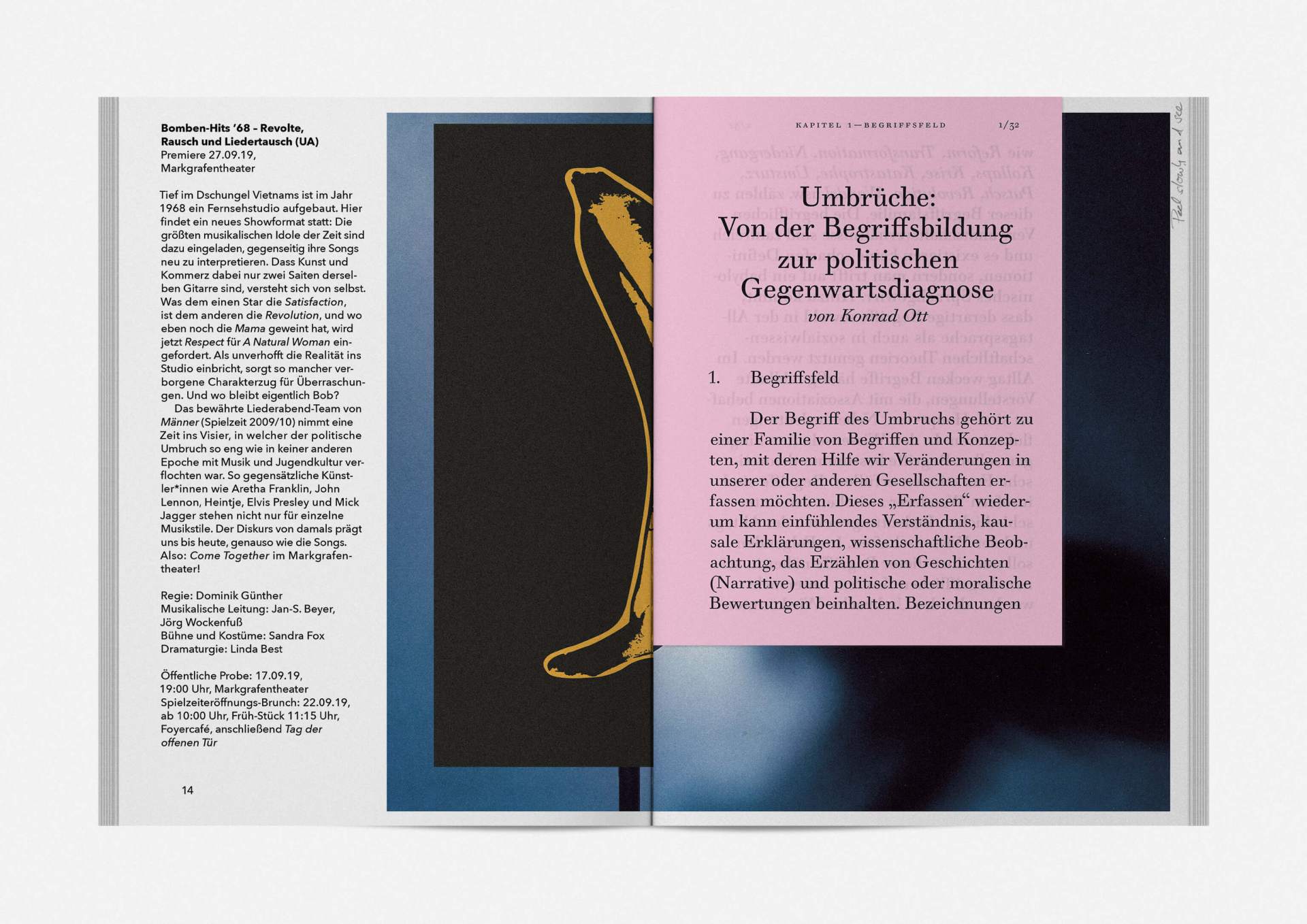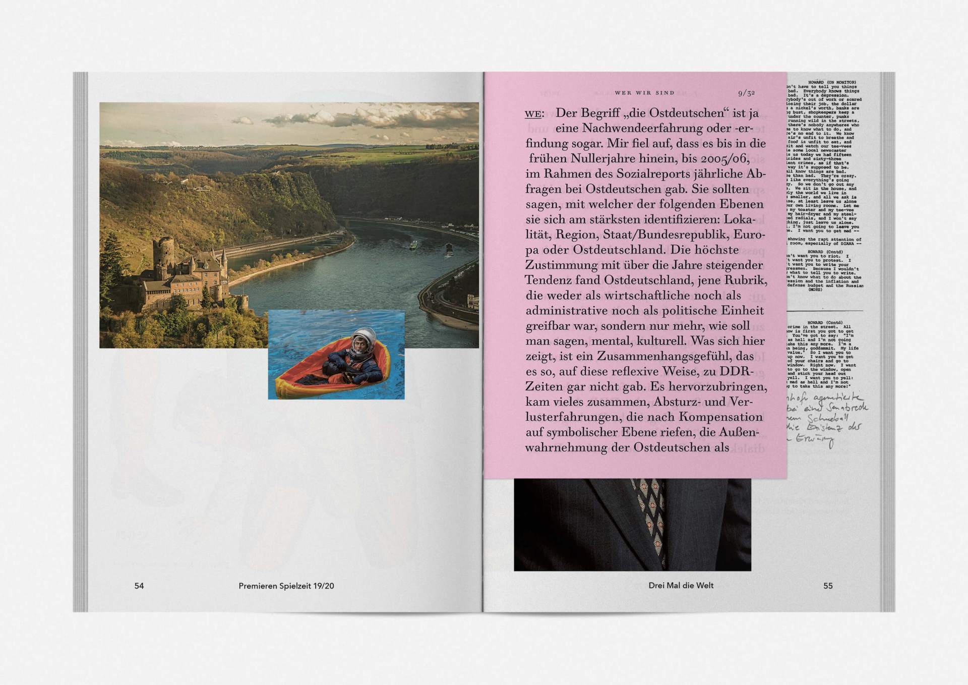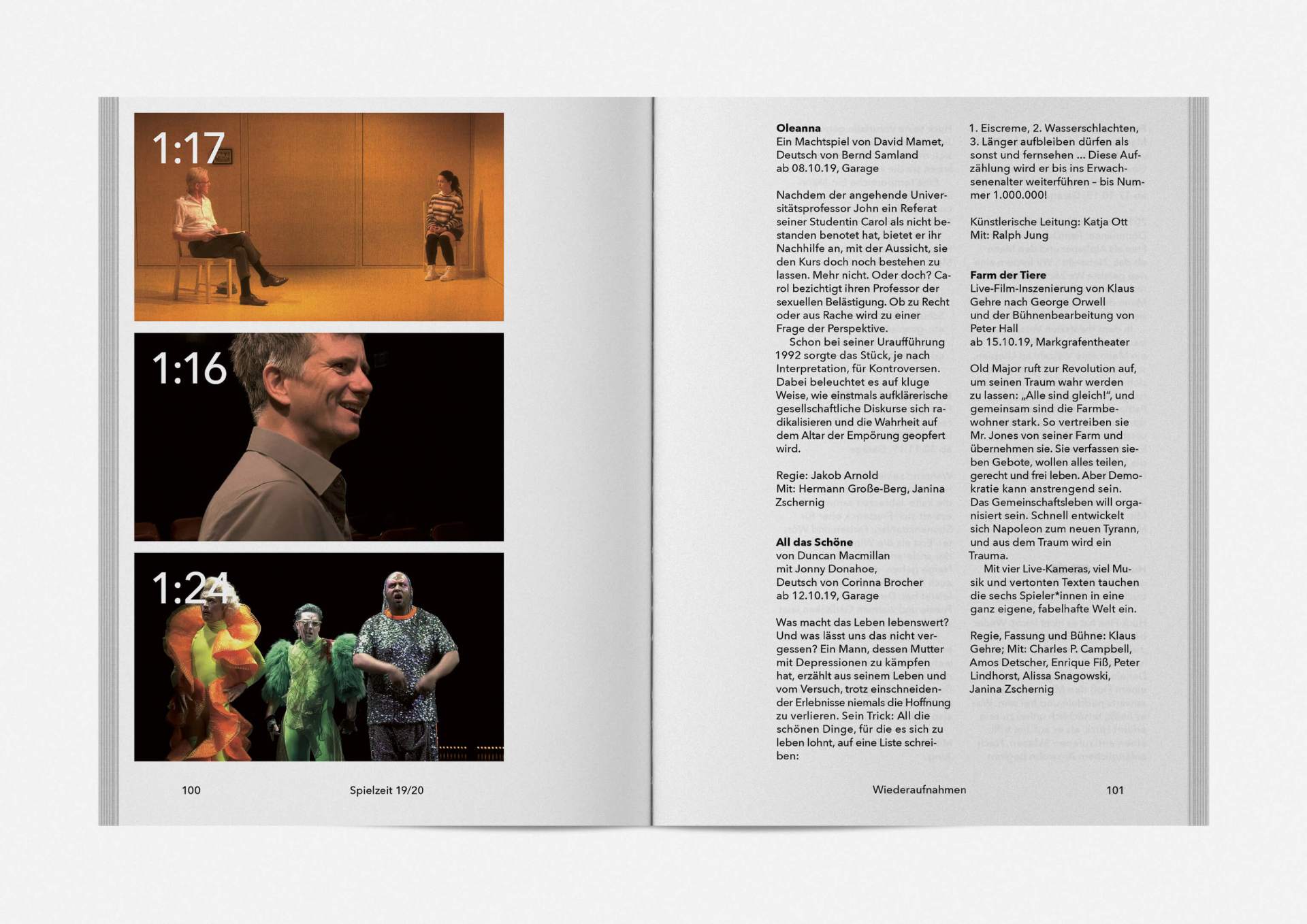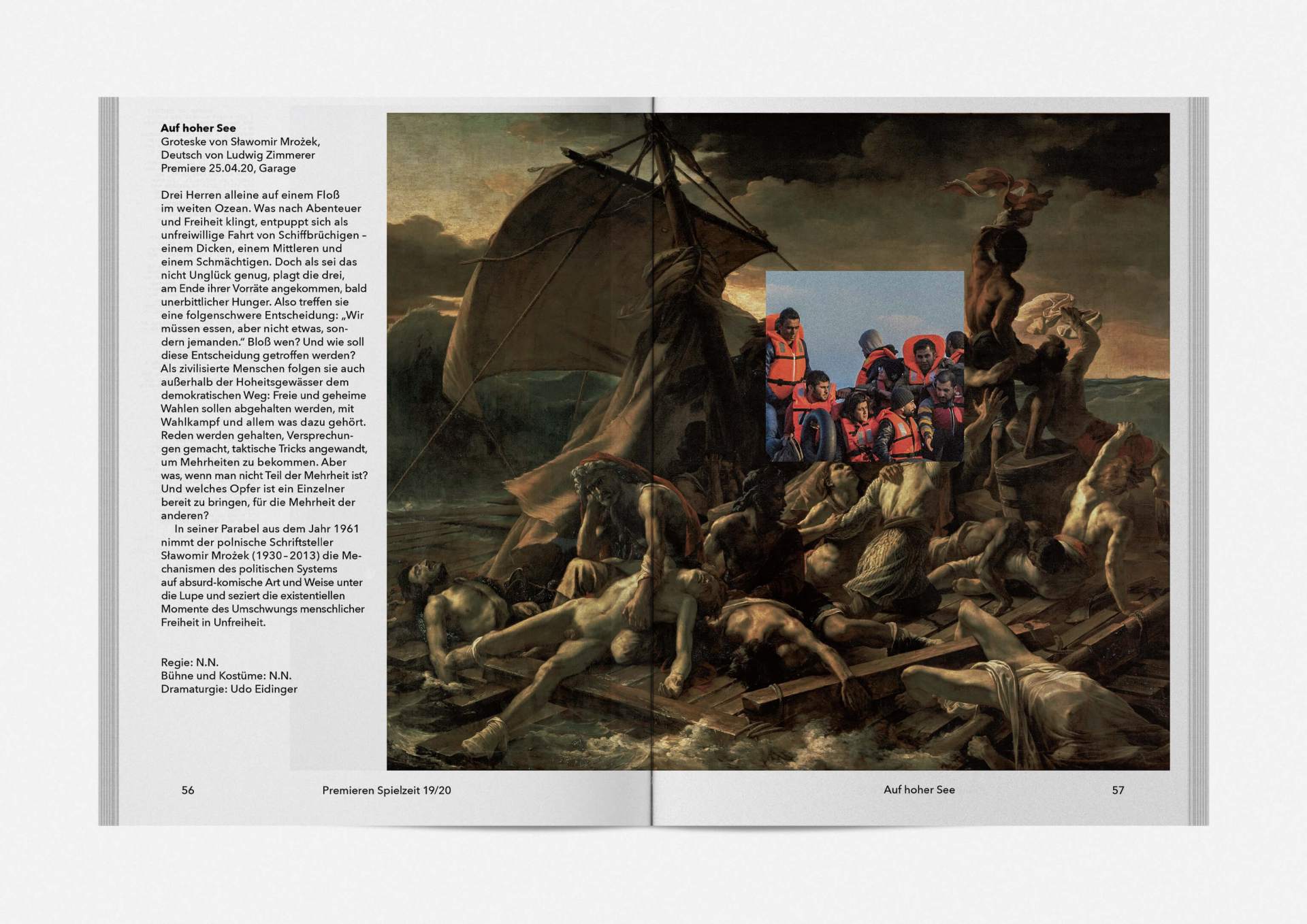 „An error has occurred“ — This is the motto under which the theater’s program and season booklet is created for 2019/20. It expresses the „not possible“ and „unimaginable“ in collages from the inexhaustible collection of images on the Internet. Freely available, copyright-free illustration material interweaves the familiar and the unfamiliar. In addition to the theatre texts in typographical New Objectivity, a non-verbal narrative level opens up in surrealist compositions.