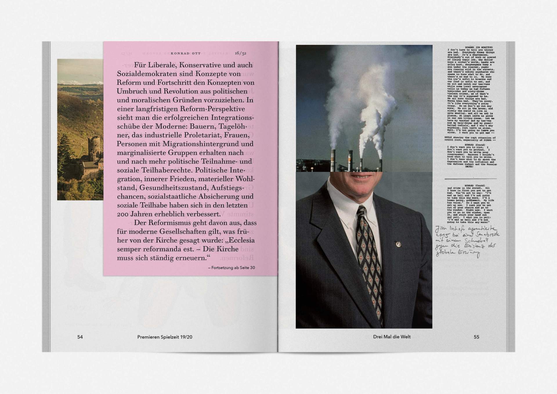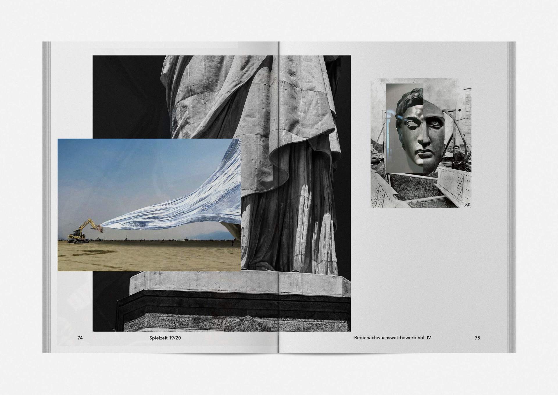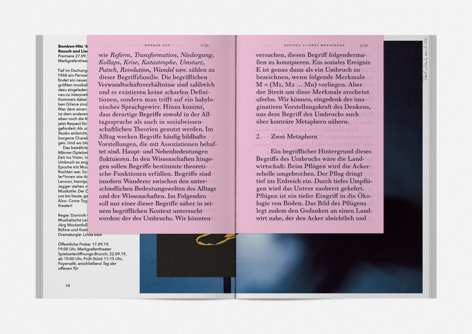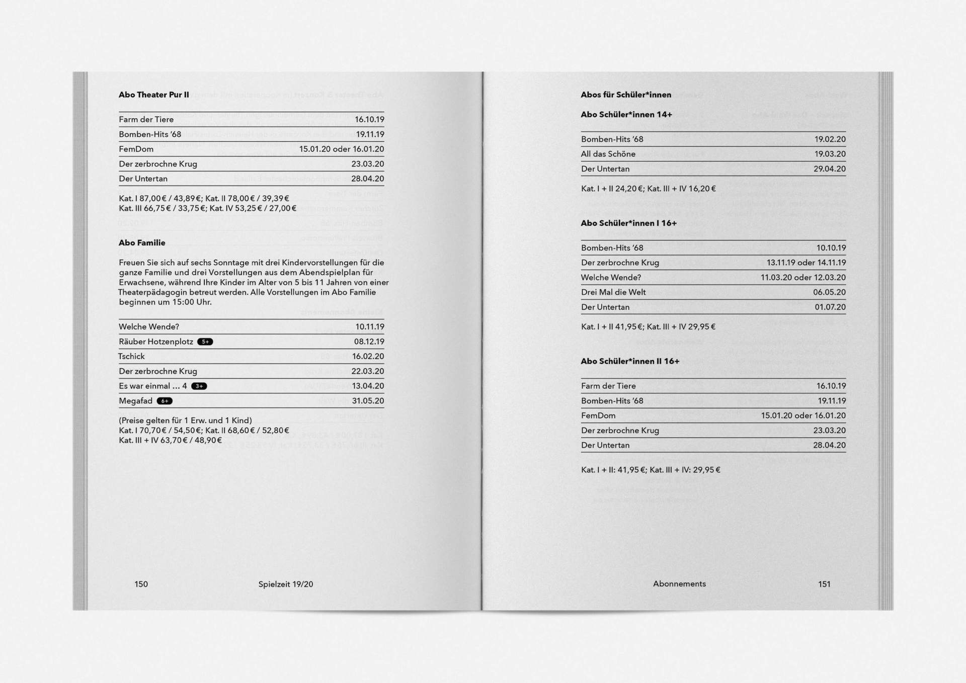 „An error has occurred“ — This is the motto under which the theater’s program and season booklet is created for 2019/20. It expresses the „not possible“ and „unimaginable“ in collages from the inexhaustible collection of images on the Internet. Freely available, copyright-free illustration material interweaves the familiar and the unfamiliar. In addition to the theatre texts in typographical New Objectivity, a non-verbal narrative level opens up in surrealist compositions.