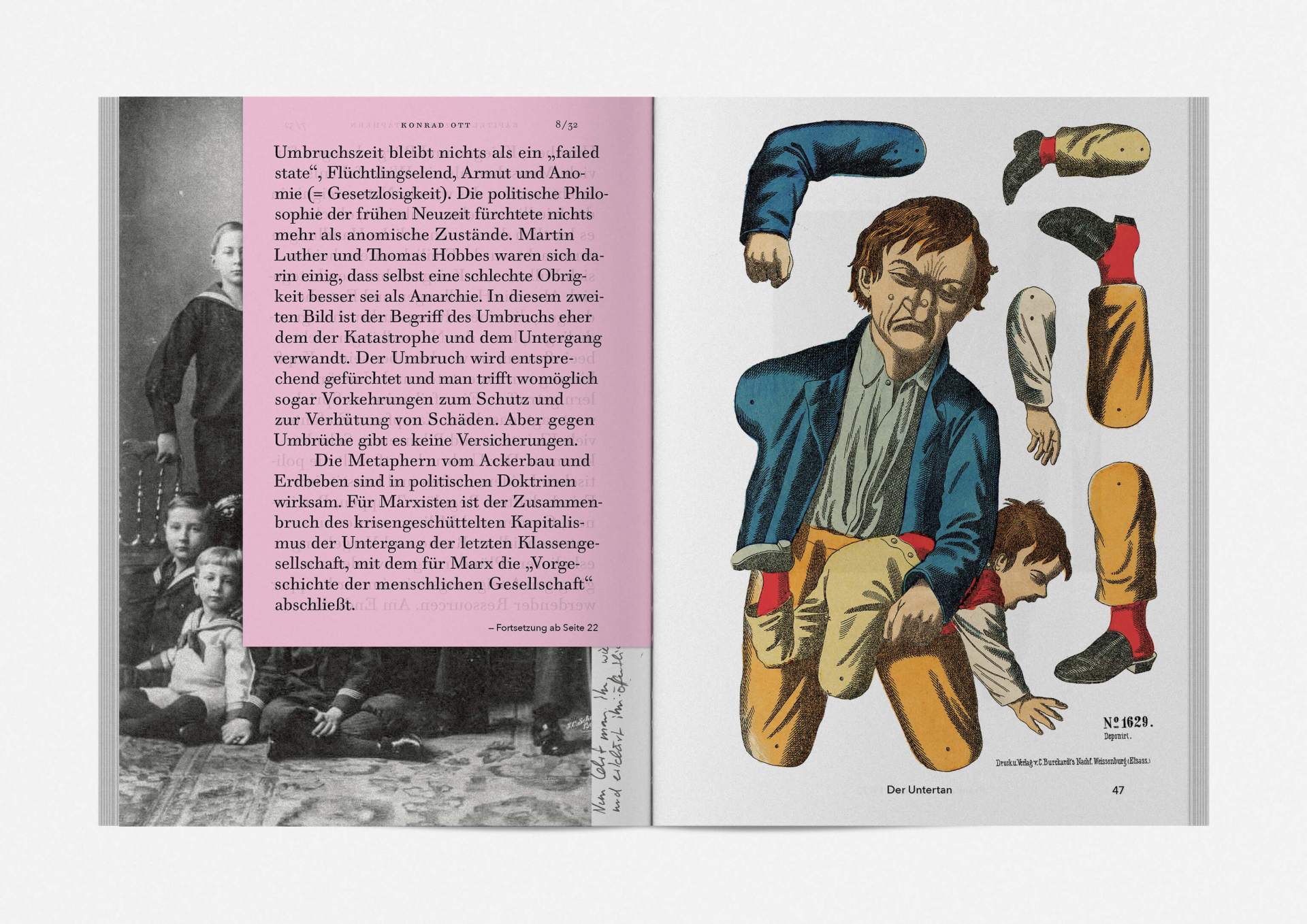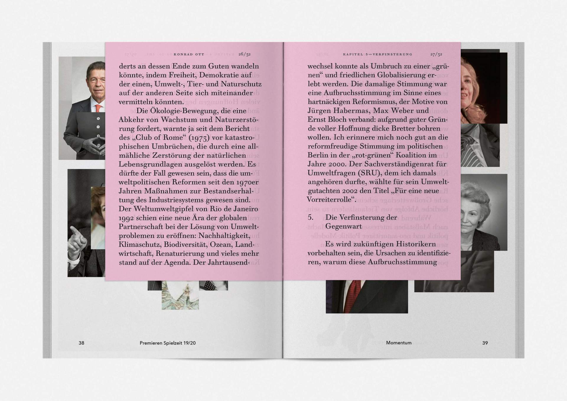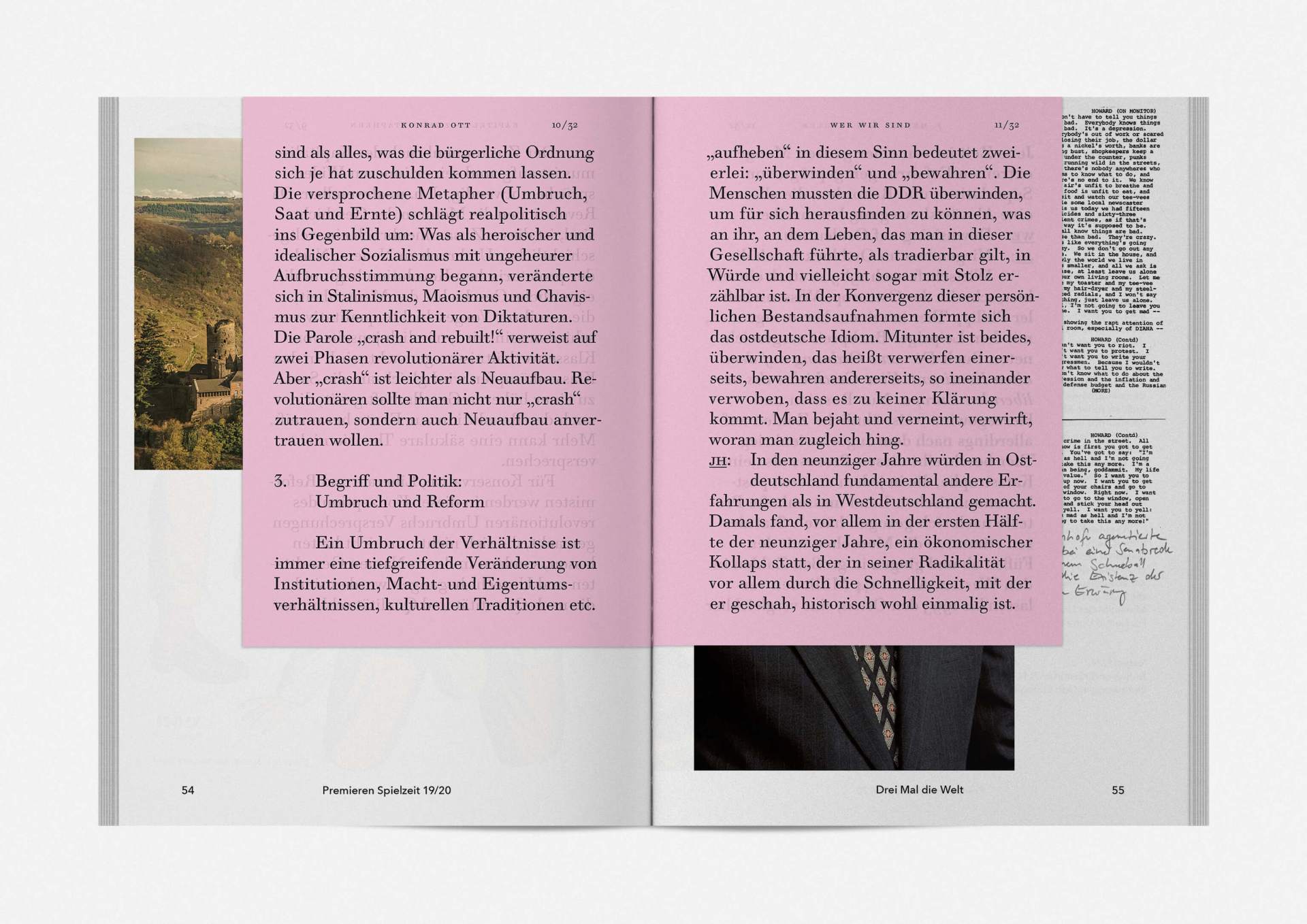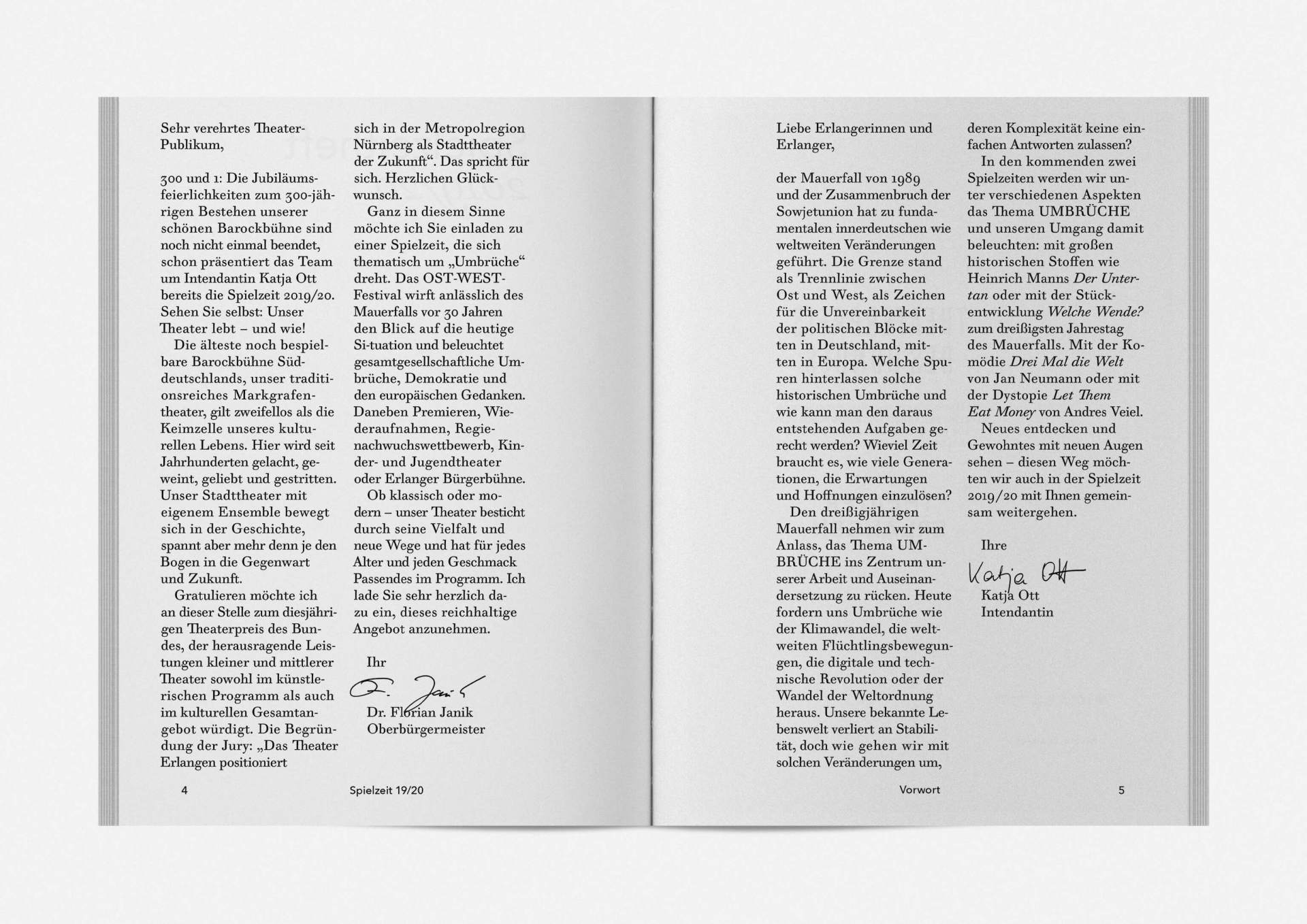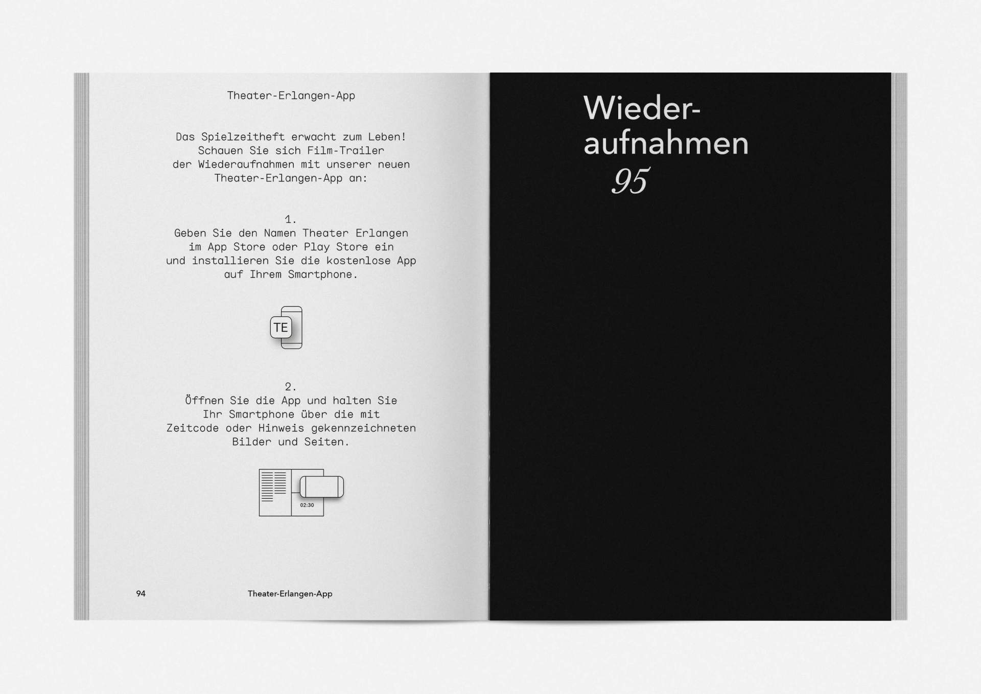 „An error has occurred“ — This is the motto under which the theater’s program and season booklet is created for 2019/20. It expresses the „not possible“ and „unimaginable“ in collages from the inexhaustible collection of images on the Internet. Freely available, copyright-free illustration material interweaves the familiar and the unfamiliar. In addition to the theatre texts in typographical New Objectivity, a non-verbal narrative level opens up in surrealist compositions.